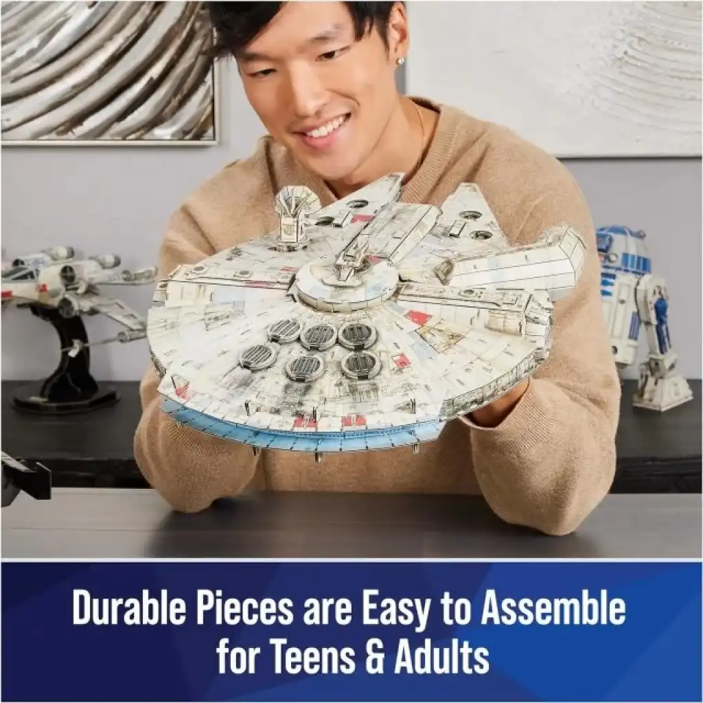 DETAYLI KOPYA: Filmlerdeki gibi Star Wars raf dekor parçasıyla destansı bir yapım macerasına atılın. Bu 4D Build Millennium Falcon kart stoğu model kitinde film kalitesinde ince ayrıntılar, yapıştırıcı ve stand bulunur!