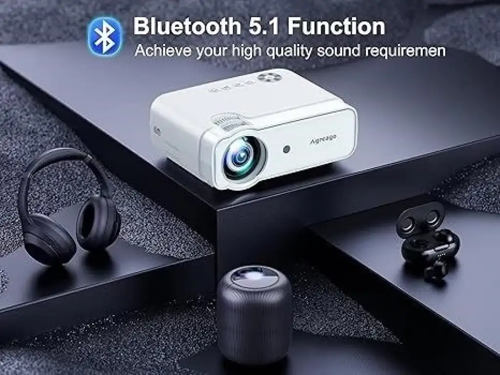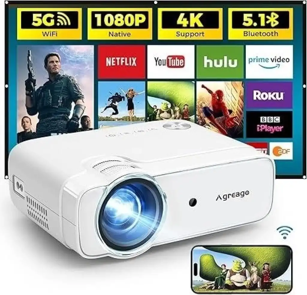 Projector with WiFi and Bluetooth, 5G WiFi Native 1080P 14000L 4K Supported, AGREAGO Portable Outdoor Projector with Screen, Home Theater Projector Compatible with TV Stick/iOS/Android/Win/HDMI/USB