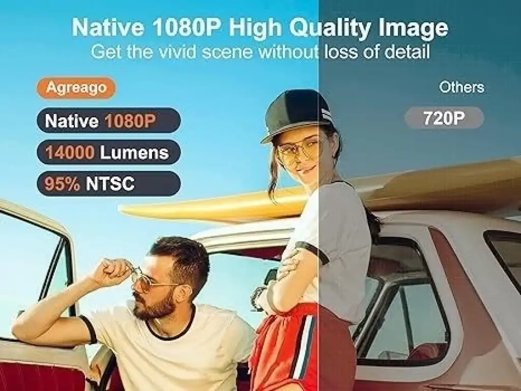 [Yerel 1080P Full HD Çözünürlük] 100'' ekrana sahip bu film projektörü, 1920x1080 gerçek çözünürlük ve 15000:1 kontrast oranıyla canlı ve keskin HD görüntüler sağlar. TV çubukları aracılığıyla Netflix, YouTube ve Roku izlemek, fotoğraf ve tatil dekorasyonlarını görüntülemek için mükemmel hale getirmek için 3LCD renk kalibrasyonlu 14000L ekran içerir. Gözleri korurken net görüntüler sağlamak için TV projektörü, yüksek kırılmalı 6 katmanlı camlı bir lens ve dağınık yansımalı göz bakım ışığı kaynağı kullanır