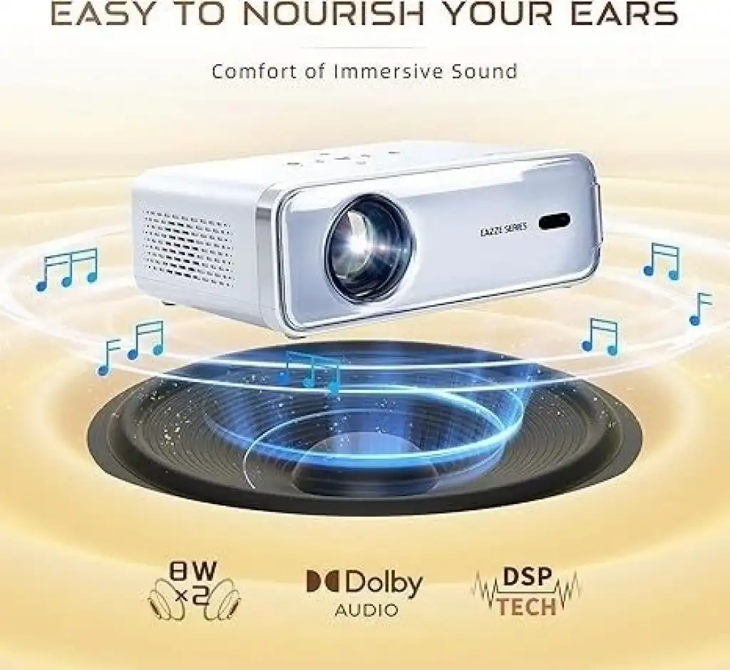Kulaklarınızı Beslemek Kolaydır - Aurzen Eazze D1 taşınabilir projektörde çift 8W hoparlörle odayı dolduran DoIby Audio'ya dalın. Daha gerçekçi ses ve gelişmiş bas için özelleştirilebilir ses modlarının keyfini çıkarın, bu da onu filmler, müzik, oyun ve spor için mükemmel hale getirir.