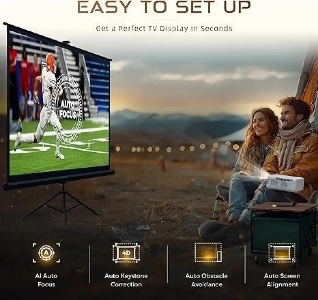 Kurulumu Kolay - Gerçek bir akıllı projektör olan Aurzen Eazze D1, Otomatik Yardım Özellikleri (Otomatik Odaklama, Otomatik Keystone Düzeltme, Otomatik Ekran Hizalama ve Otomatik Engelden Kaçınma) ile saniyeler içinde 200 inçe kadar mükemmel bir dikdörtgen ekrana ulaşmanızı sağlar. Ayrıca, bu taşınabilir projektör ihtiyaçlarınıza uyacak şekilde ekran boyutunu %50 ile %100 arasında ayarlamanıza olanak tanıyan bir yakınlaştırma işlevine sahiptir.