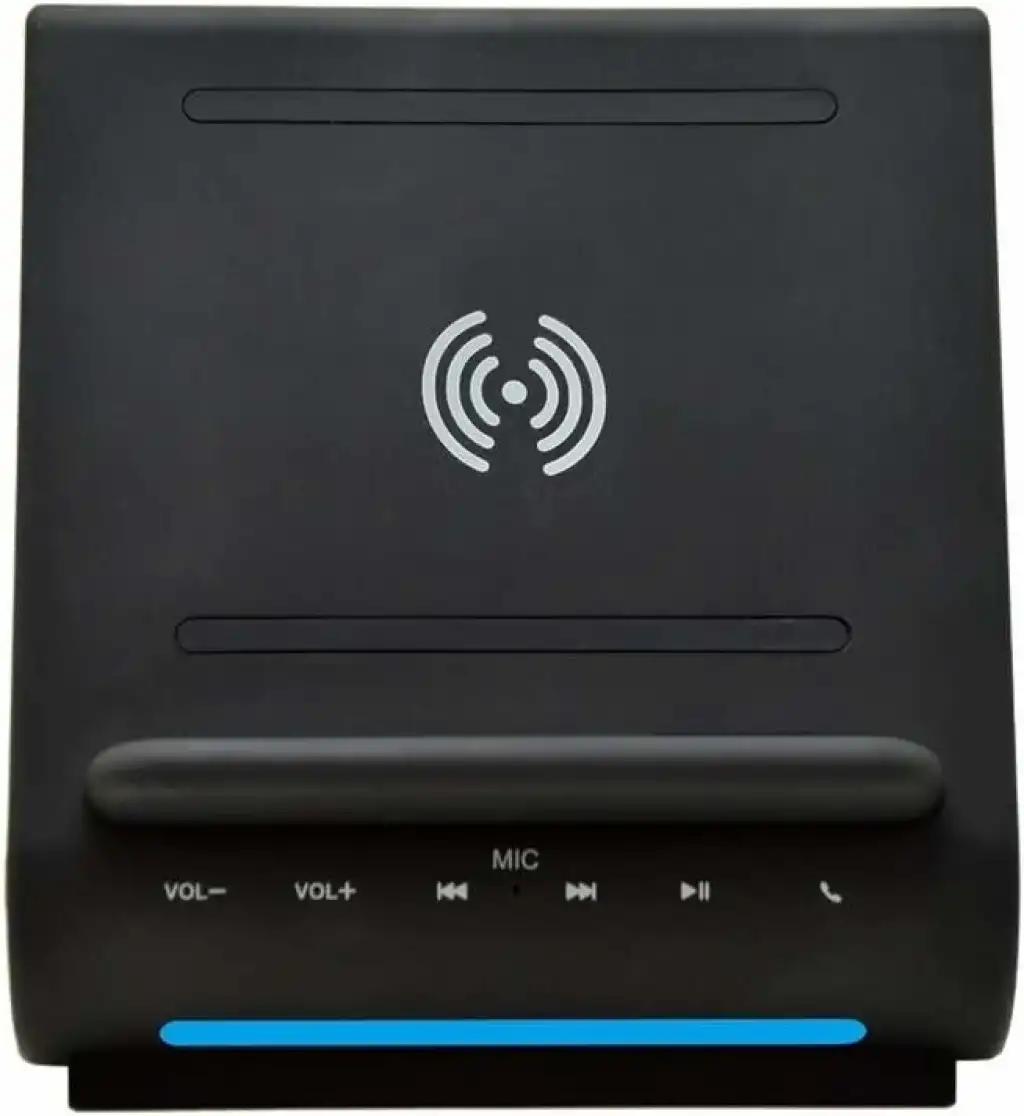 Sadece bir şarj cihazından daha fazlasıdır; aynı zamanda iki adet 5 Watt'lık Hoparlör aracılığıyla birinci sınıf ses sağlayan bir Bluetooth hoparlör sistemiyle birlikte gelir. İki adet tam boyutlu USB şarj bağlantı noktası, 64 GB'a kadar kartları barındıran bir MicroSD bağlantı noktası, yerleşik bir mikrofon ve ön panel kontrolleri. 5 mm kalınlığa kadar plastik kasalardan (metal hariç) kablosuz olarak şarj edilecek şekilde test edilmiştir. Üç dikey şarj bobini, dikey veya yatay şarja izin verir. LED şarj gösterge ışığı. Dahili mikrofonu sayesinde aynı zamanda hoparlör görevi de görür.