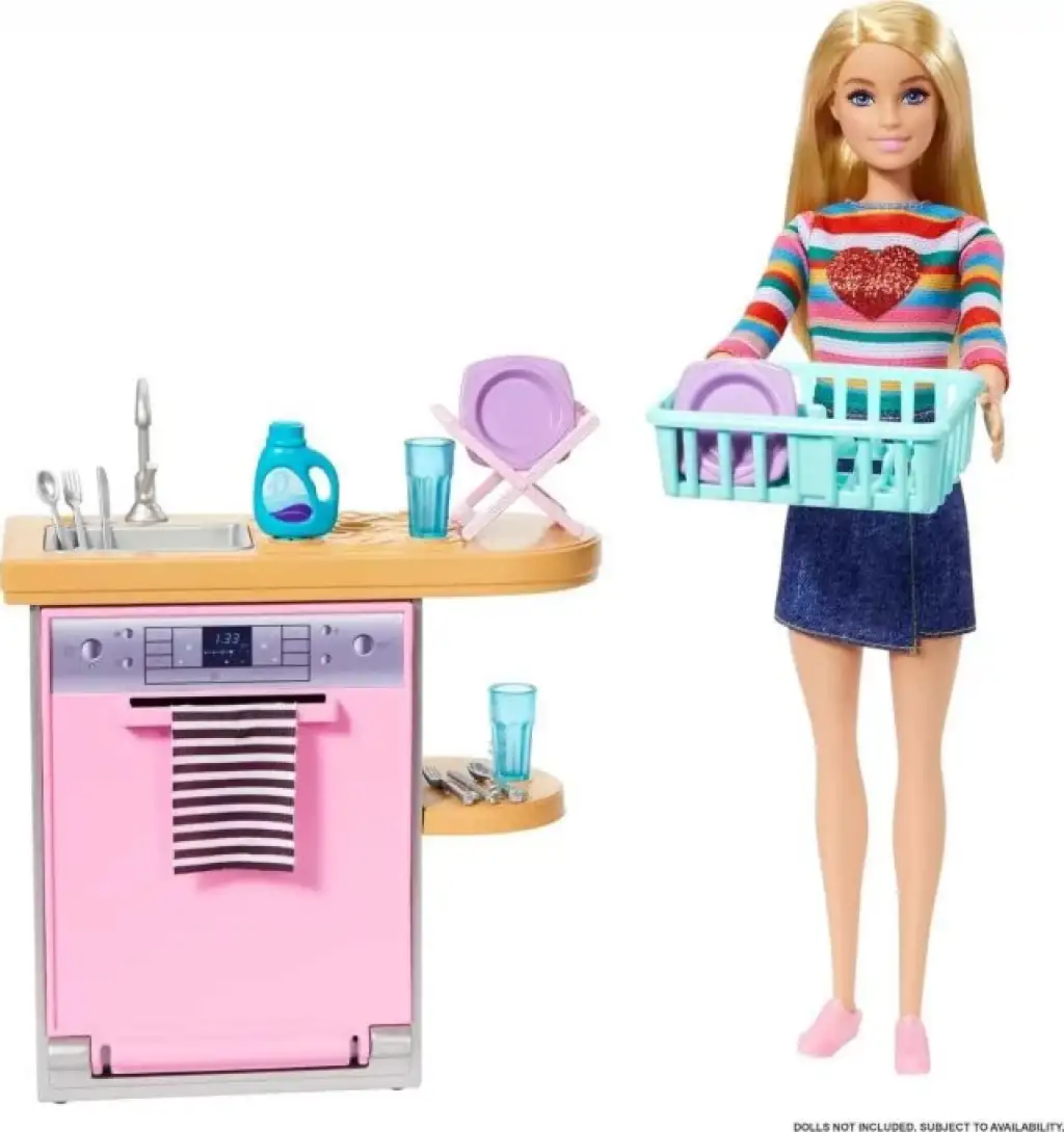 Çocuklar mutfak temizliği yaparak hayal güçlerini geliştirebilirler! Bu Barbie aksesuar paketinde bir parça mobilya ve çeşitli dekorasyon eşyaları bulunur.