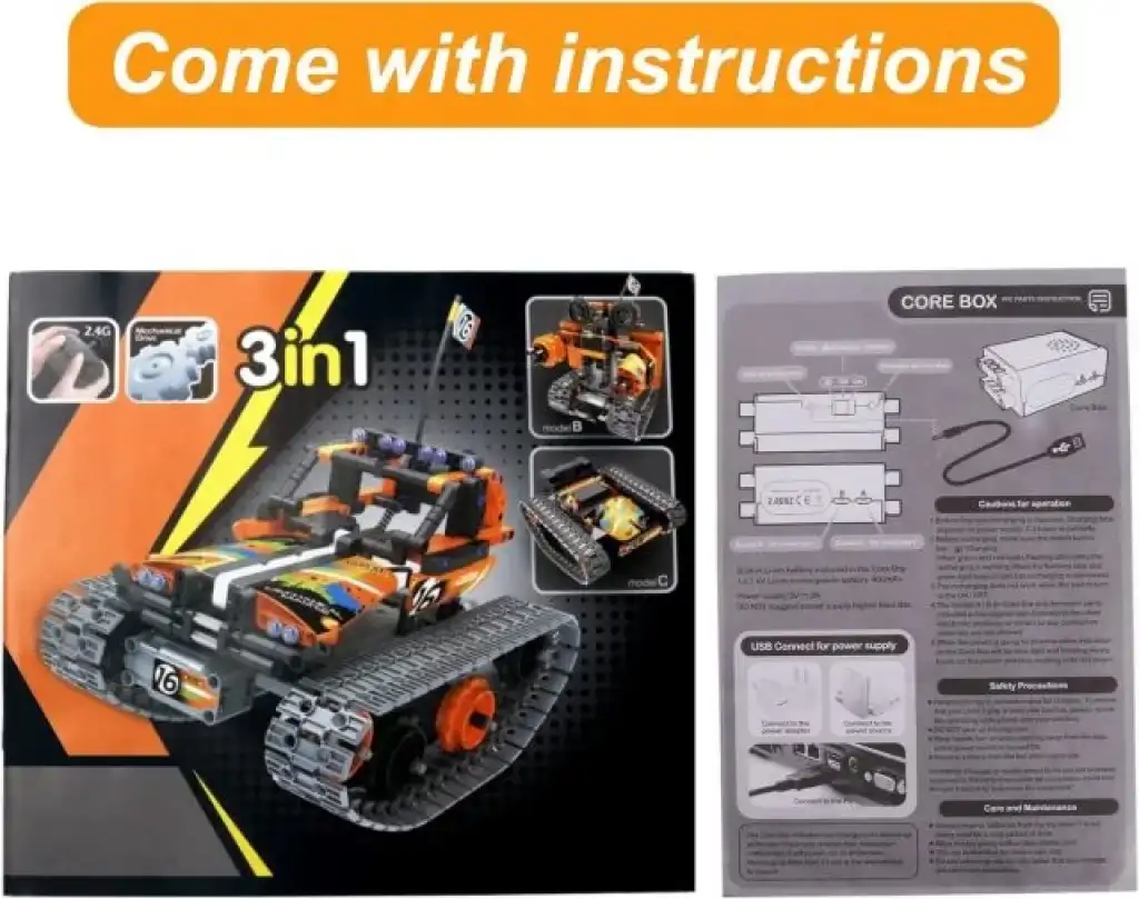 • 3'ü 1 arada bina setleri - yalnızca rc paletli yarış oyunu değil, aynı zamanda taklacı robot ve dönen araba da yapabilirsiniz. İkinci modeli söküp sıfırdan oluşturabilirsiniz. Üstelik bu set turuncu modelimiz ile de uyumludur ve toplam 6 model arasından seçim yapabilirsiniz. Çoklu bir yap ve oyna eğlencesi.