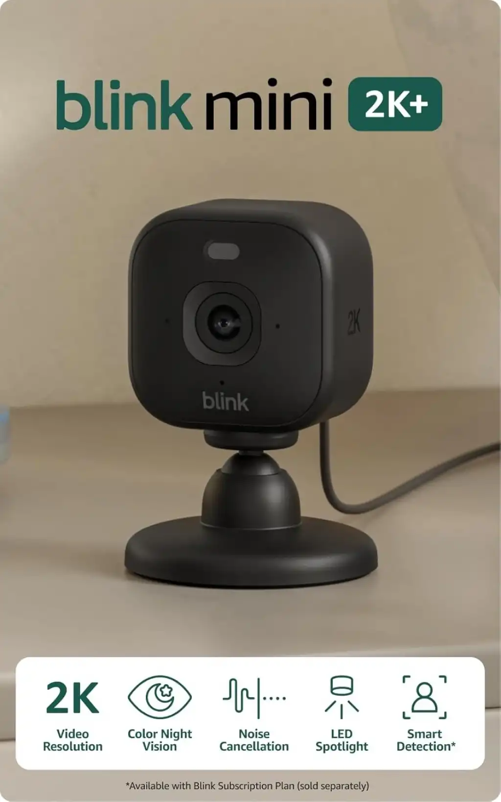 Kapı zili sesi — Mini 2K+'yı Blink Video Kapı Zili (ayrı satılır) için fişe takılabilir bir zil olarak kullanın. Birisi Blink Video Kapı Zilini çaldığında Mini 2K+'dan gerçek zamanlı bir uyarı sesi duyun.