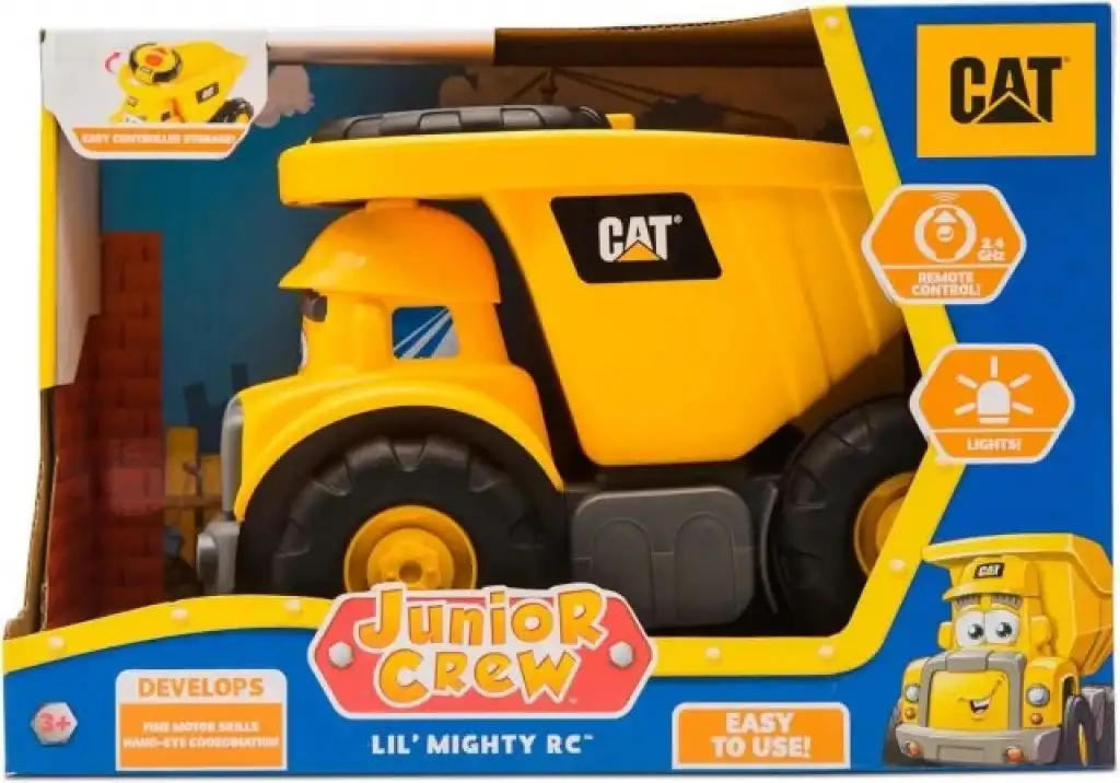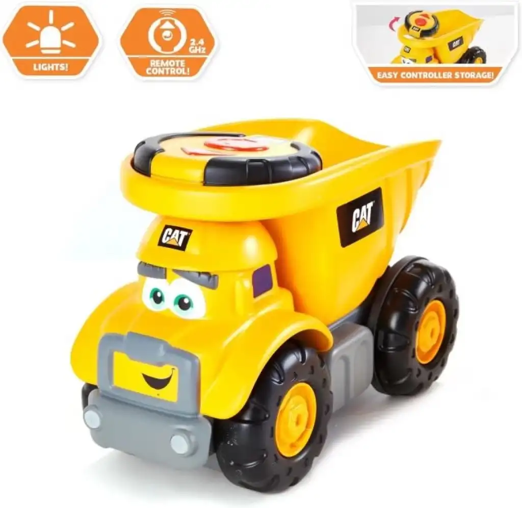 CAT İNŞAAT OKUL ÖNCESİ RC: 10,5" uzun basit fonksiyonlu RC Uzaktan kumandalı Kamyon oyuncağı. Basit fonksiyonlu RC arabaları veya uzaktan kumandalı arabalar gibi çalışır