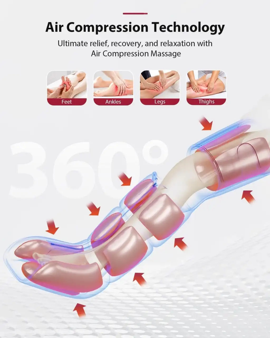 【Hava Kompresyonlu Bacak Masaj Aleti】CINCOM Bacak Kompresyonlu Masaj Aleti ile en üst düzey rahatlamayı deneyimleyin. 12+12 hava yastığı ve gelişmiş sıralı hava basıncı teknolojisine sahip CINCOM 3'ü 1 arada bacak masaj aleti, ayaklar, baldırlar ve uyluklar için kapsamlı bir rahatlama sağlar. Profesyonel düzeyde bir masajın keyfini çıkarın, kan dolaşımını ve RLS şişkinliğini artırın ve bacakların daha hızlı iyileşmesini sağlayın.
