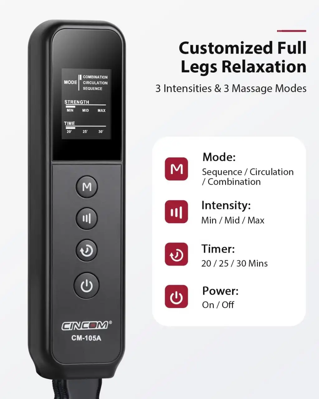 CINCOM Leg Massager for Circulation and Pain Relief, Air Compression 3 in 1 Leg Massager for Foot Calf & Thigh, Leg Compression Boots for Recovery, Edema, RLS Relief