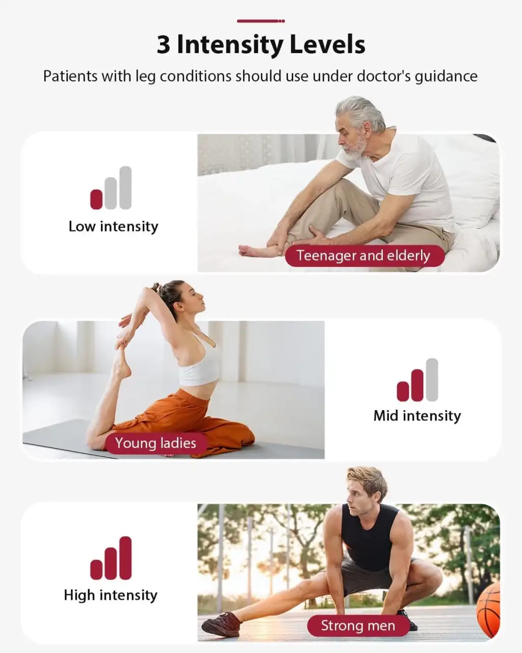 【Kişiselleştirilmiş Bacak Sıkıştırma Makinesi】LCD el tipi kontrol cihazı, bacak masajı deneyiminizi kolayca kişiselleştirmenize olanak tanıyan 3 mod ve 3 yoğunluk seviyesi sunar. Bacaklar için sıkıştırma cihazları, distalden proksimale kan dolaşımını artırarak günlük yorgunluğu gideren Sıralı/Dolaşım/Kombinasyon Modlarını içerir. Lenfödem, günlük şişlik ve kas iyileşmesi için uygundur.