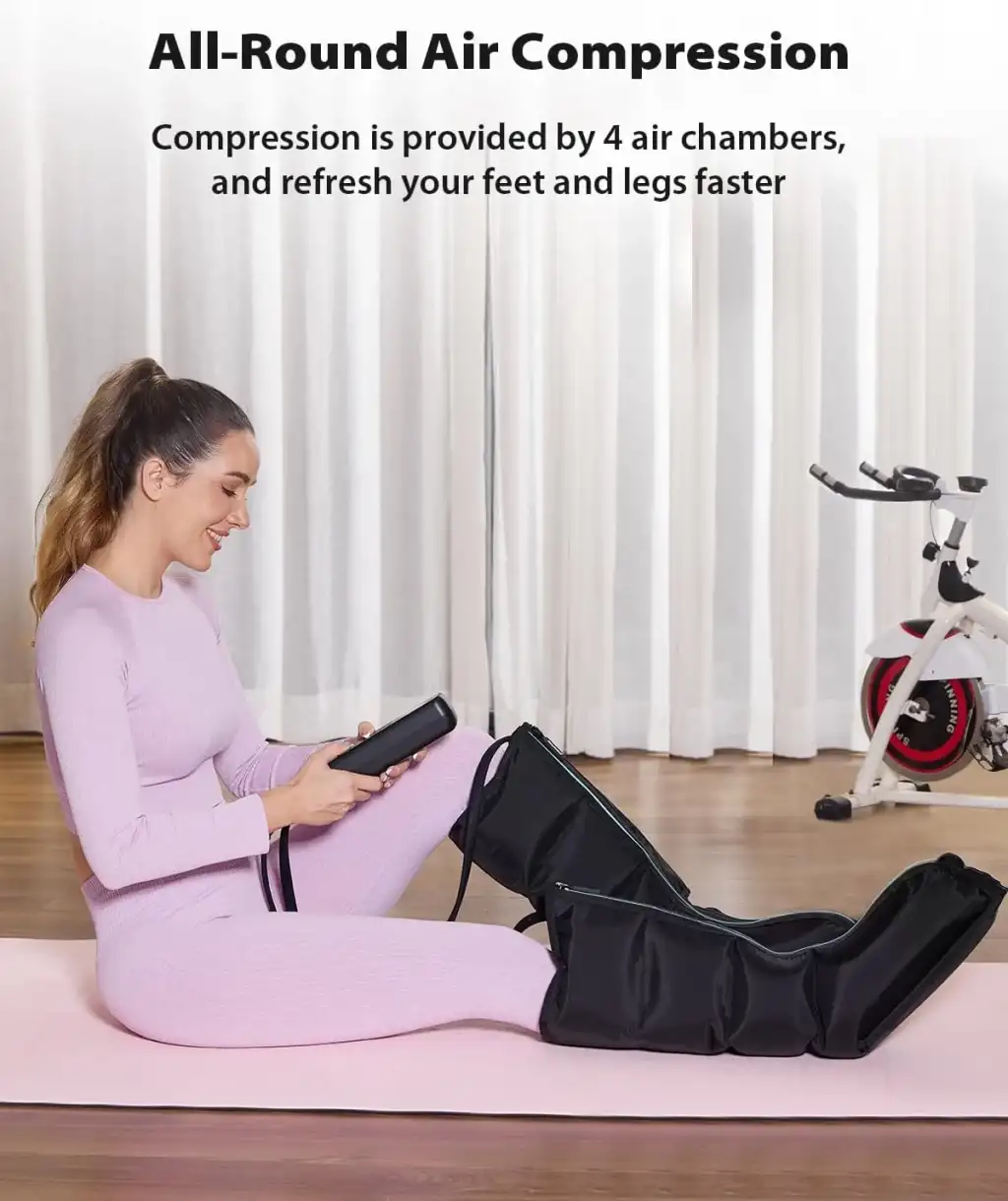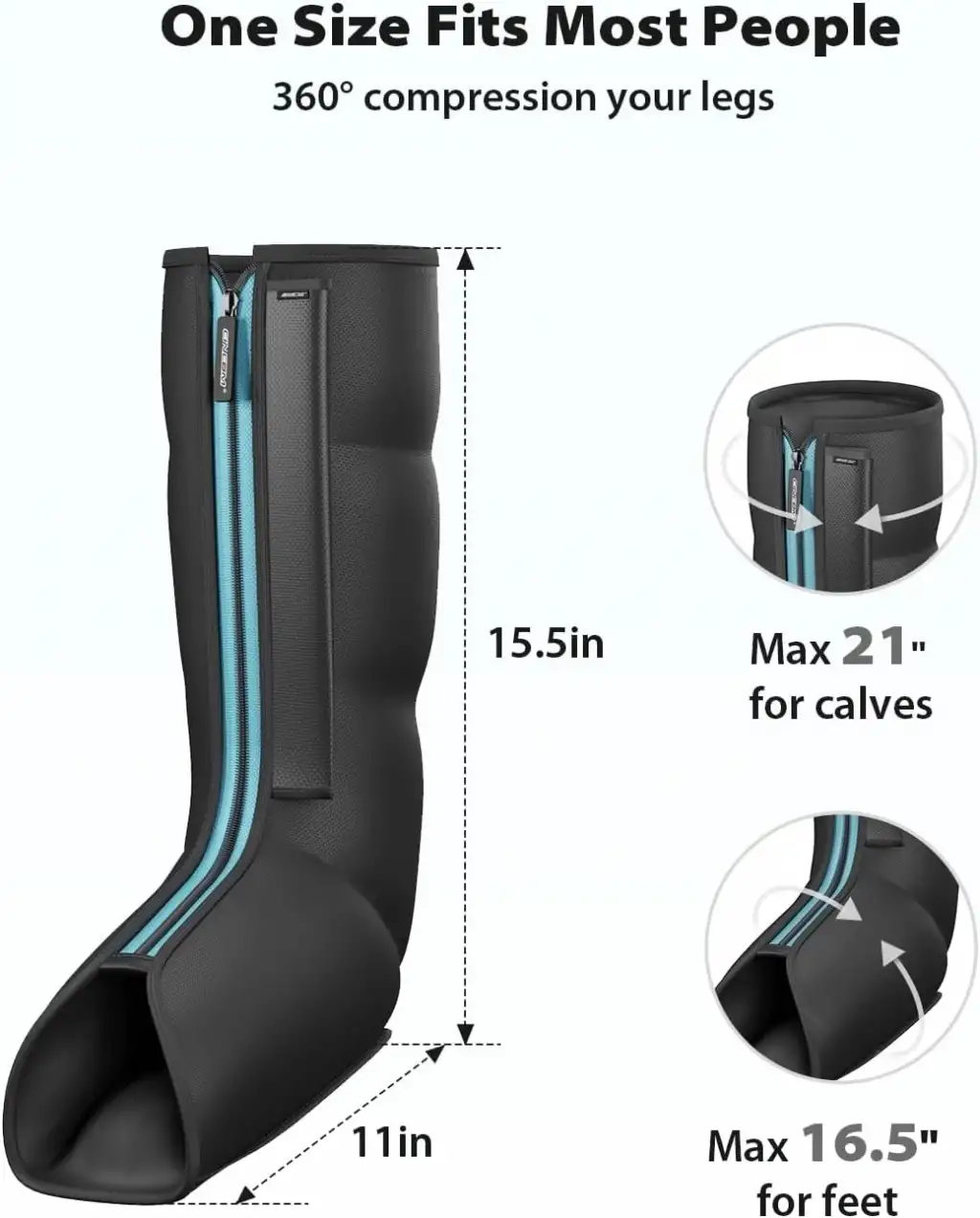 Daha Önce Hiç Olmadığı Kadar Rahatlayın ve İyileşin - Geliştirilmiş bacak kompresyon masaj aleti, ayaktan baldıra 27 farklı masaj hareketiyle sıralı hava kompresyonu uygulayarak 360° tam bir kompresyon deneyimi sunar. Bacak yorgunluğunu ve ağrısını etkili bir şekilde hafifletirken, aynı zamanda RLS, lenfödem ve şişliği de rahatlatır. Ayrıca, vücut dolaşımını artırır ve hızlı iyileşmeyi destekler.