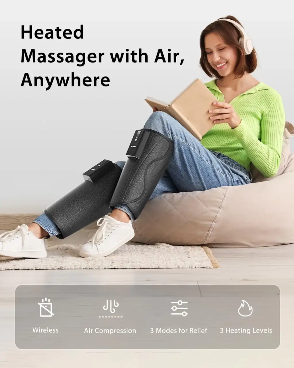 【Kişiselleştirilmiş Baldır Masajınız】3 ısı seviyesi, 3 masaj modu ve 3 yoğunluk seçeneğine sahip kablosuz bacak kompresyon masaj aletiyle, kendi iyileşme seansınızı bulmak için seçenekleri karıştırıp eşleştirebilirsiniz. Bacak gününden sonra ağrıyı gidermek için ısıyı ve basıncı artırın veya rahatlatıcı bir akşam enerjisi için nazik tutun. 27 olası kombinasyonla, sizin bacaklarınız, sizin kurallarınız