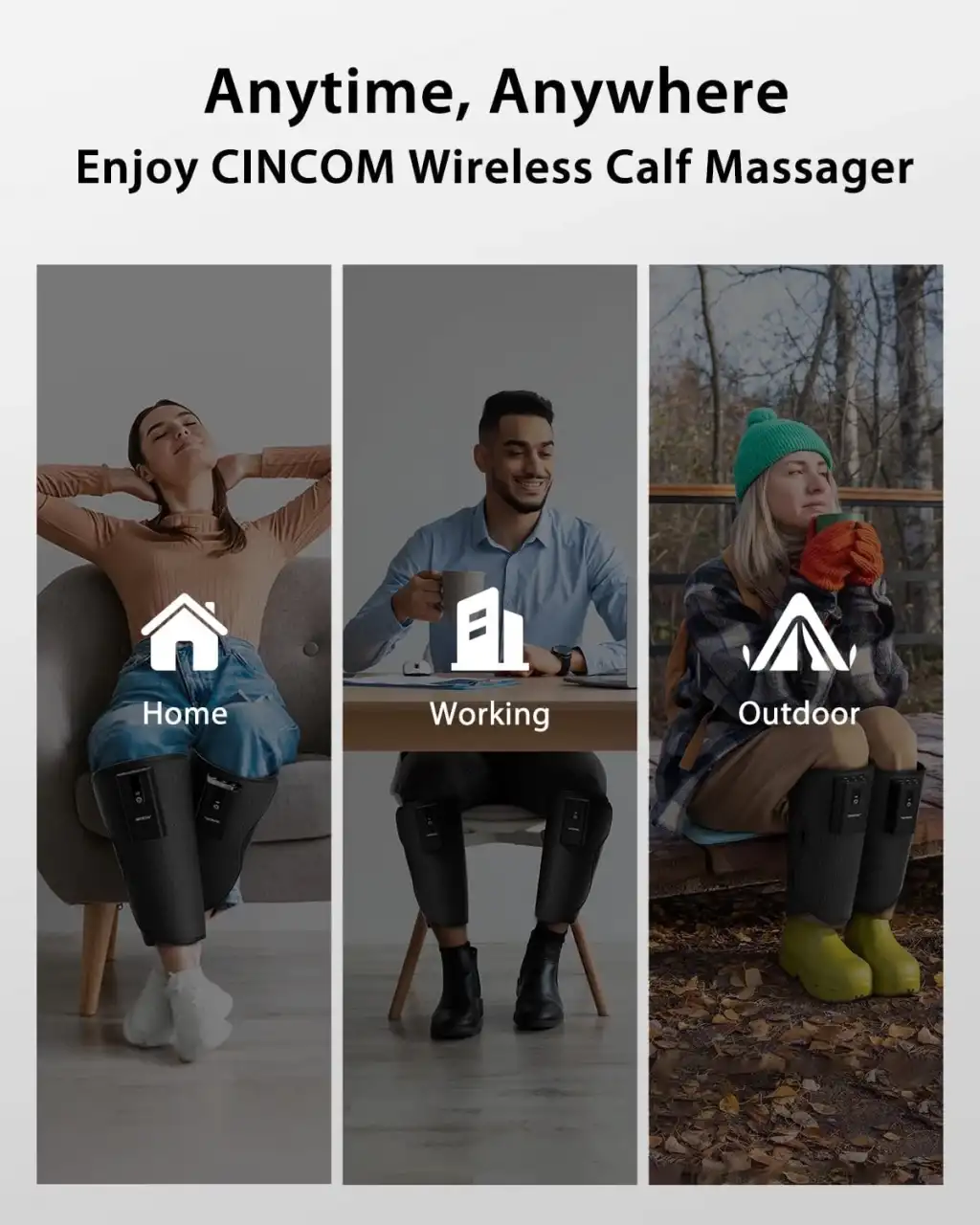 【Kablosuz Isı ve Hava Kompresyon Terapisi】CINCOM kablosuz bacak masaj aleti, rahatlatıcı ısı terapisini hava kompresyon darbeleriyle birleştirerek, nerede olursanız olun baldırlarınıza 360 derecelik konforlu bir masaj sağlar; spor salonu sonrası soyunma odalarında, ofis masanızda veya hatta sıkışık uçak koltuklarında. Isı gerginliği azaltırken, hava kompresyonu dolaşımı artırır; tüm bunlar bir prize bağlı kalmadan gerçekleşir.