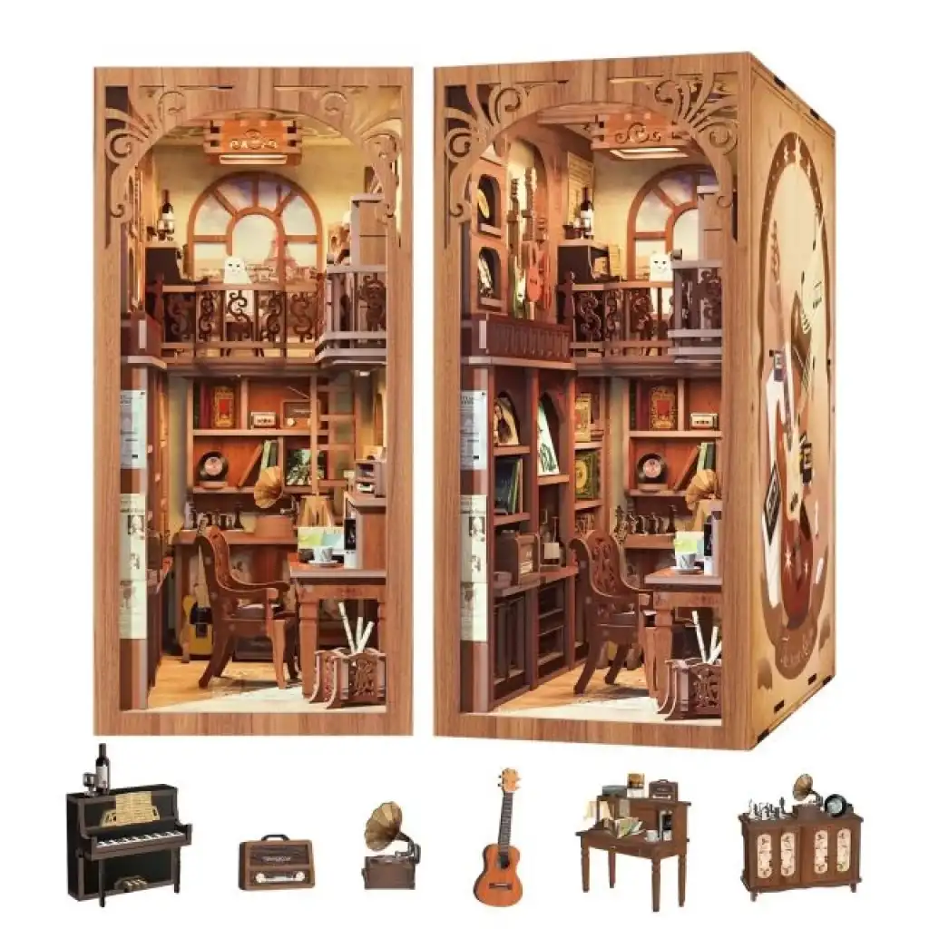 EĞLENCELİ KENDİN YAP DENEYİMİ - DIY BOOK NOOK parçalarla birlikte gelir ve bitmiş bir ürün değil, bir araya getirilmesi gerekir. Yeni başlayan biri olsanız bile, renk kılavuzu minyatür kiti tamamlamanız için size adım adım rehberlik edebilir. Bu kendin yap bebek evi seti, 14 yaşın üzerindeki kişiler için uygundur. Bu nedenle gençlerle ve yetişkinlerle iletişim kurmanın harika bir yoludur ve aynı zamanda gerçek bir mühendis gibi planlamanız ve inşa etmeniz için size ilham verebilir.