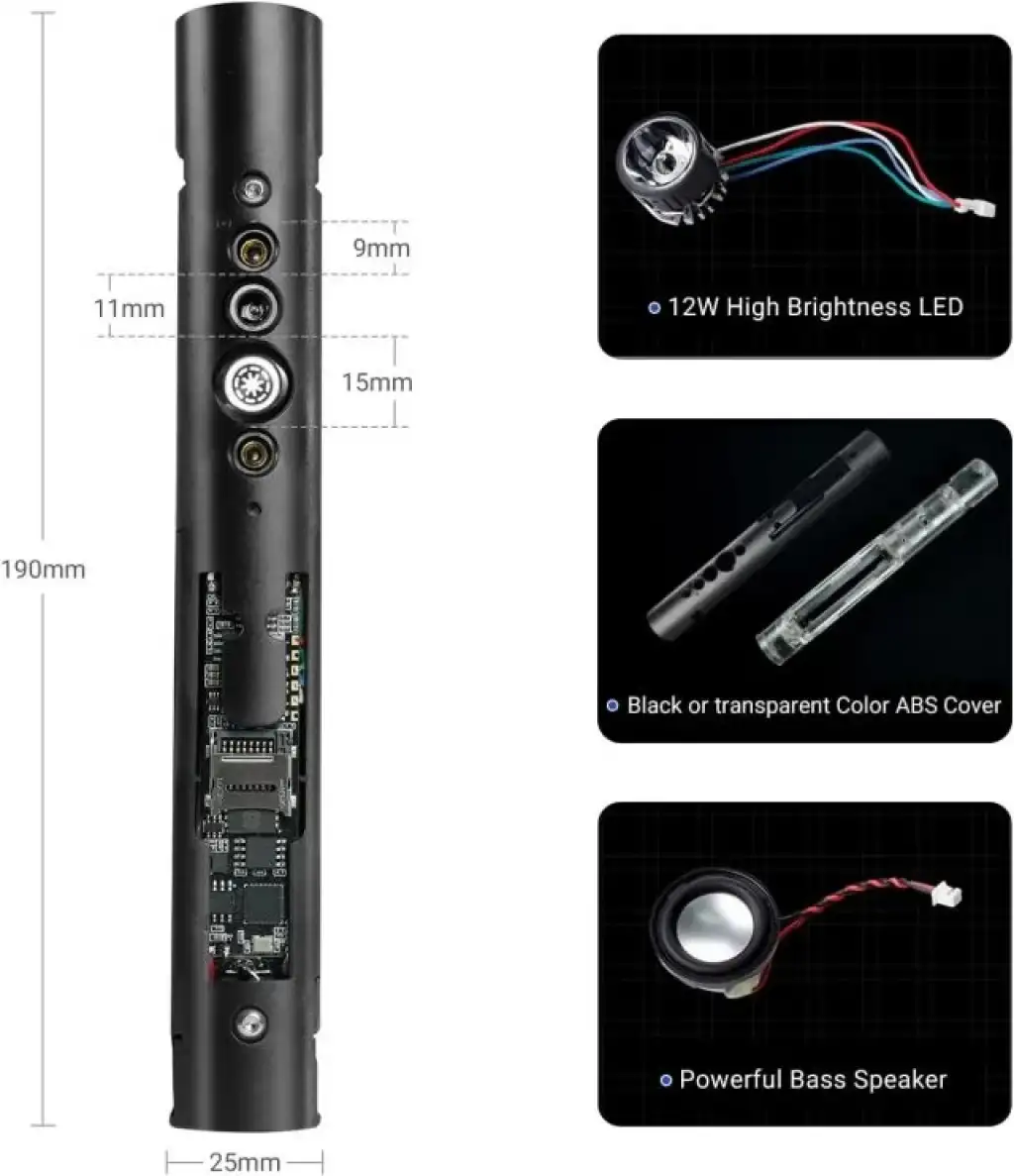 Kendin yap veya onarım için mükemmel olan yapı setimiz, özel kılıcınızı pürüzsüz salınım sesi ve kabza şarjıyla hayata geçirmek için ihtiyacınız olan her şeyi içerir. Şasi boyutu: OD 25,4 mm, uzunluk 185 mm (Kabartma ID'si en az 25,6 mm olmalıdır). Hareket Kontrolü: Genellikle yalnızca yüksek seviyeli ışın kılıçlarında kullanılan hareket kontrolünü sağlamak için açık/kapalı desteği vardır. 2 Renk modu: Yalnızca sonsuz renk seçimini desteklemekle kalmaz, aynı zamanda düz renk seçimini de destekler, en sevdiğiniz rengi bir saniyede değiştirin. Kartı tam şarj işleminde bile koruyacak güvenli pil yuvasına sahip yüksek kaliteli elektronik parçası vardır.