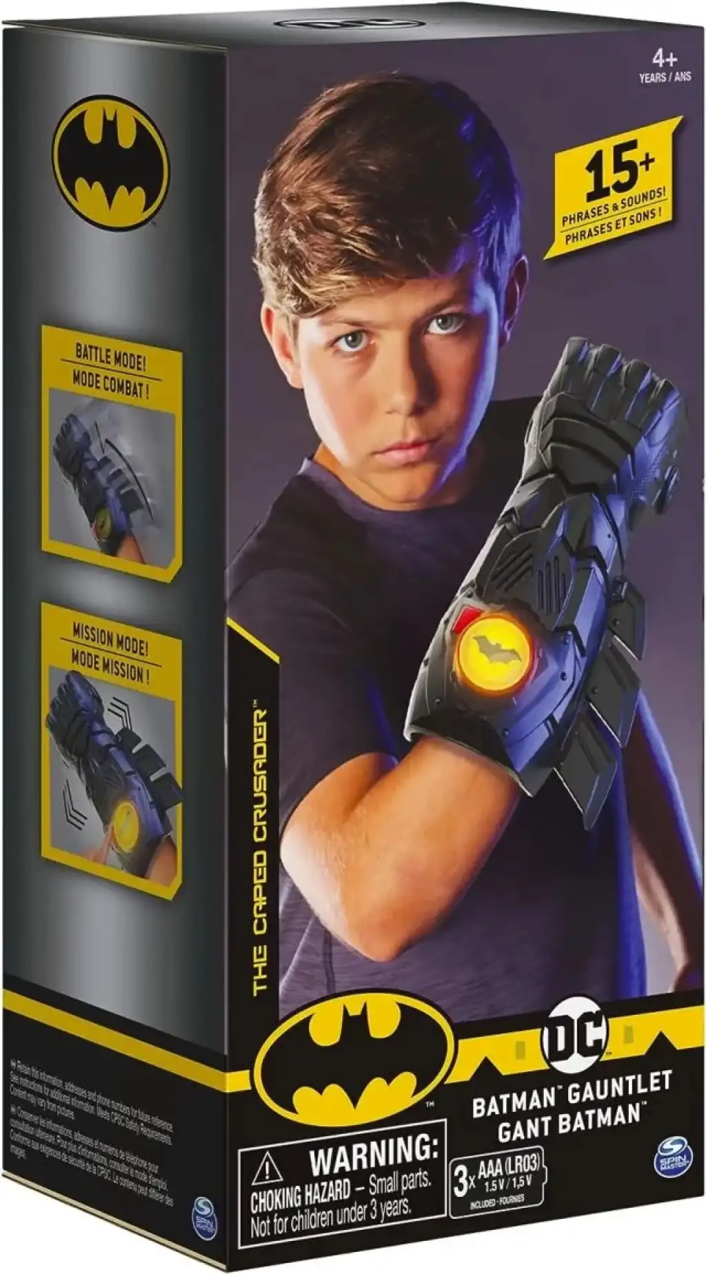 İNTERAKTİF BATMAN Gauntlet: Işıklar ve sesler, özgün ayrıntılar ve sağa veya sola yerleştirilebilen fistolarla bu etkileşimli eldiven ikonik BATMAN Gauntlet'e hayat veriyor!