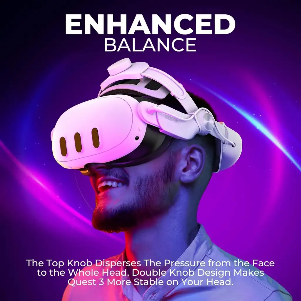 【Yüzde Basınç Yok】: Geliştirilmiş çift düğme ve ayarlanabilir yan kayışlar, üst kayış ağırlığı dağıtarak optimum konfor sağlar. Ek olarak, baş bandı Quest 3'ün yüzle temas açısının ayarlanabilir olmasını sağlar. Bu, yüzdeki basıncı önemli ölçüde azaltır, en rahat uyumu bulmanızı sağlar ve VR baş bandının sabit kalmasını sağlar.