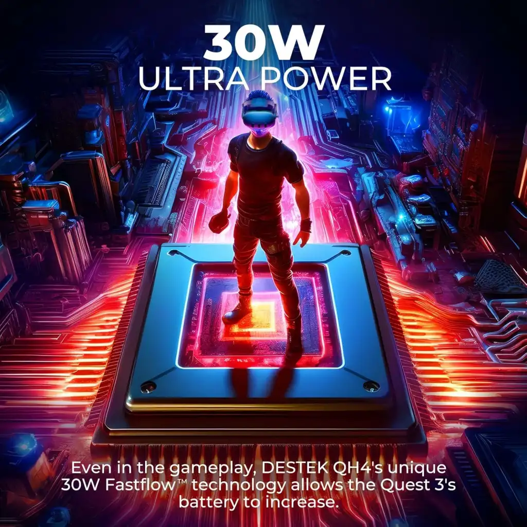 DESTEK QH4 Battery Head Strap, Comfort Pressure-Free 30W Fast Charging, Extra 3.5 h Playtime for Meta Quest 3/3S