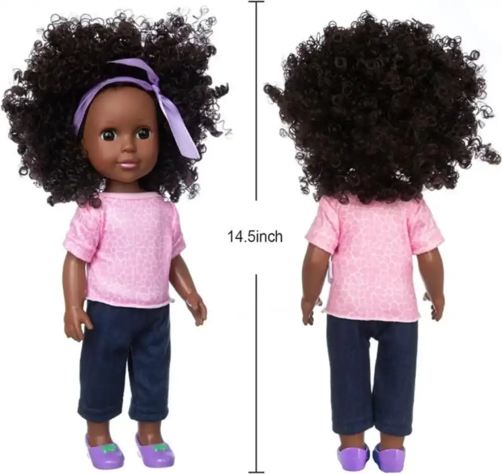 Gerçekçi Siyah Bebek: 36Cmlik siyah bebeğimiz büyük ela gözlere ve elle boyanmış kirpiklere sahiptir. Kollar ve bacaklar serbestçe hareket edebilir. Kabarık saçları, pembe dudakları ve sevimli yüzü onu gerçekçi bir kız gibi gösteriyor. Kaliteli sertifikalı, yıkanabilir oyuncak bebek ve kıyafetleriyle çocuğunuzun güvenle oynamasını sağlayın.