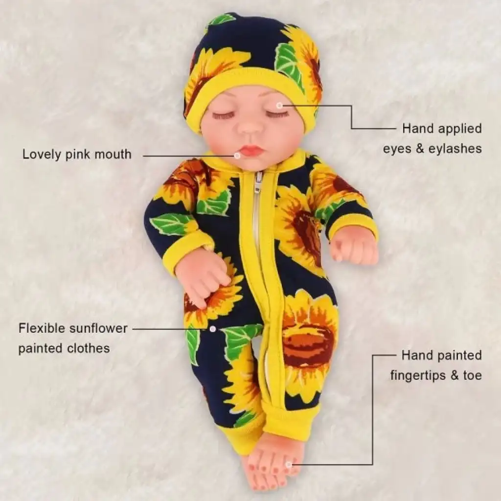 Gerçekçi Oyuncak Bebek: Pembe güzel ağız, elle uygulanan gözler ve kirpikler, esnek ayçiçeği boyalı giysiler, elle boyanmış parmak uçları ve ayak parmağı. Gerçekten gerçekçi görünüyor; Narin yüzünden minik ayaklarına kadar Yenidoğan gerçekçi.