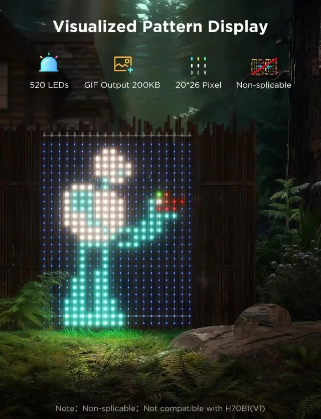 Görselleştirilmiş Desenler ve Pürüzsüz GIF Ekranı: Geliştirilmiş animasyon için 20 × 26 piksel düzenleme ve 200 KB çözünürlük uyumluluğu ile 520 lamba yuvası sayesinde mümkün olan süper zengin ve geniş görüntülerin keyfini çıkarın.