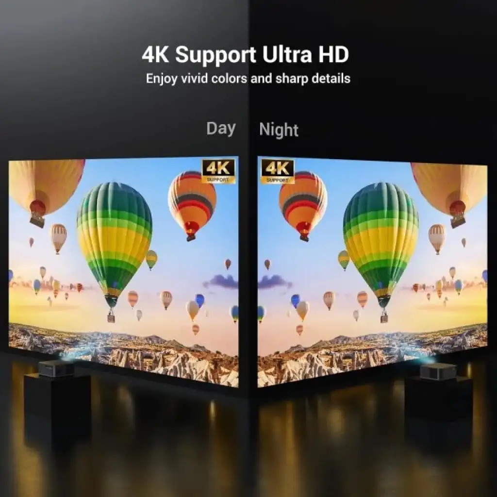 DAHA YÜKSEK KALİTELİ GÖRÜNTÜLER: 2000 ANSI ve 4K Desteği] Bu 4K projektör, 2000 ANSI lümene kadar parlaklık sunar ve 4K destekli videoyu destekleyerek, ister gündüz ister gece olsun parlak ve net görüntüler sağlar. 20000:1 kontrast oranı ve %95 renk gamı ile taşınabilir projektör, daha zengin ışık ve karanlık seviyeleri ve renk detayları sunarak her kareyi canlı ve parlak hale getirir. Evde sinema kalitesinde bir deneyimin keyfini çıkarın ve aynı zamanda açık hava film geceleri için mükemmel bir seçimdir. DAHA İYİ SES KALİTESİ: 8W Hoparlör ve Çift Yönlü Bluetooth 5.2] Bluetooth projektör, dahili 8W HiFi yüksek kaliteli ses sistemine sahiptir, böylece ek ekipmana yatırım yapmadan daha zengin ses ayrıntıları elde edebilirsiniz. Ayrıca, çift yönlü Bluetooth 5.2 ile farklı ses kalitesinin keyfini çıkarmak için harici hoparlörleri bağlamakla kalmaz, aynı zamanda projektörü telefonunuzdan müzik çalmak için Bluetooth hoparlör olarak da kullanabilirsiniz. Wi-Fi ve Bluetooth ile tek bir projektörde değeri ikiye katlayın!