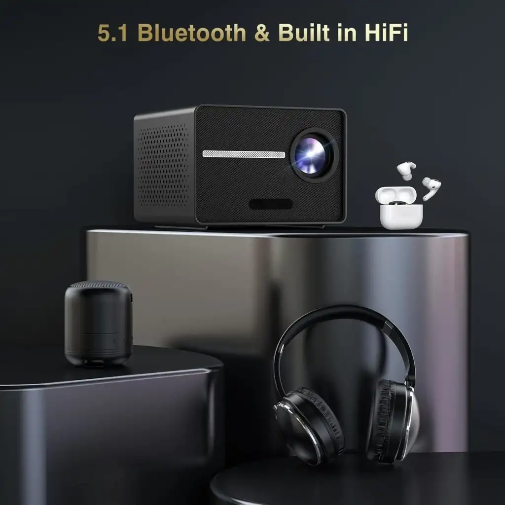 HAPPRUN Projector, [Electric Focus] Mini Projector, 1080P Support Portable Bluetooth Projector With Speaker, 200" Support Outdoor Movie Projector Compatible With Smartphone/HDMI/USB/AV/Fire Stick/PS5