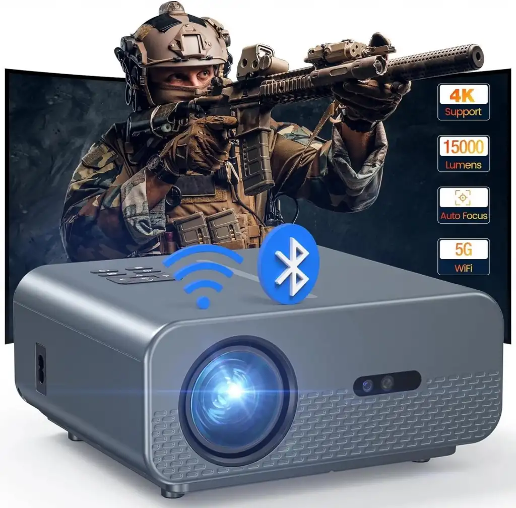 HAPPRUN Projector, [Auto Focus] Projector with WiFi and Bluetooth, 15000Lux Portable Outdoor Projector Support 4K, 6D Keystone 50% Zoom, Native 1080P Projector Compatible with HDMI/USB/AV/TV Stick/PS5