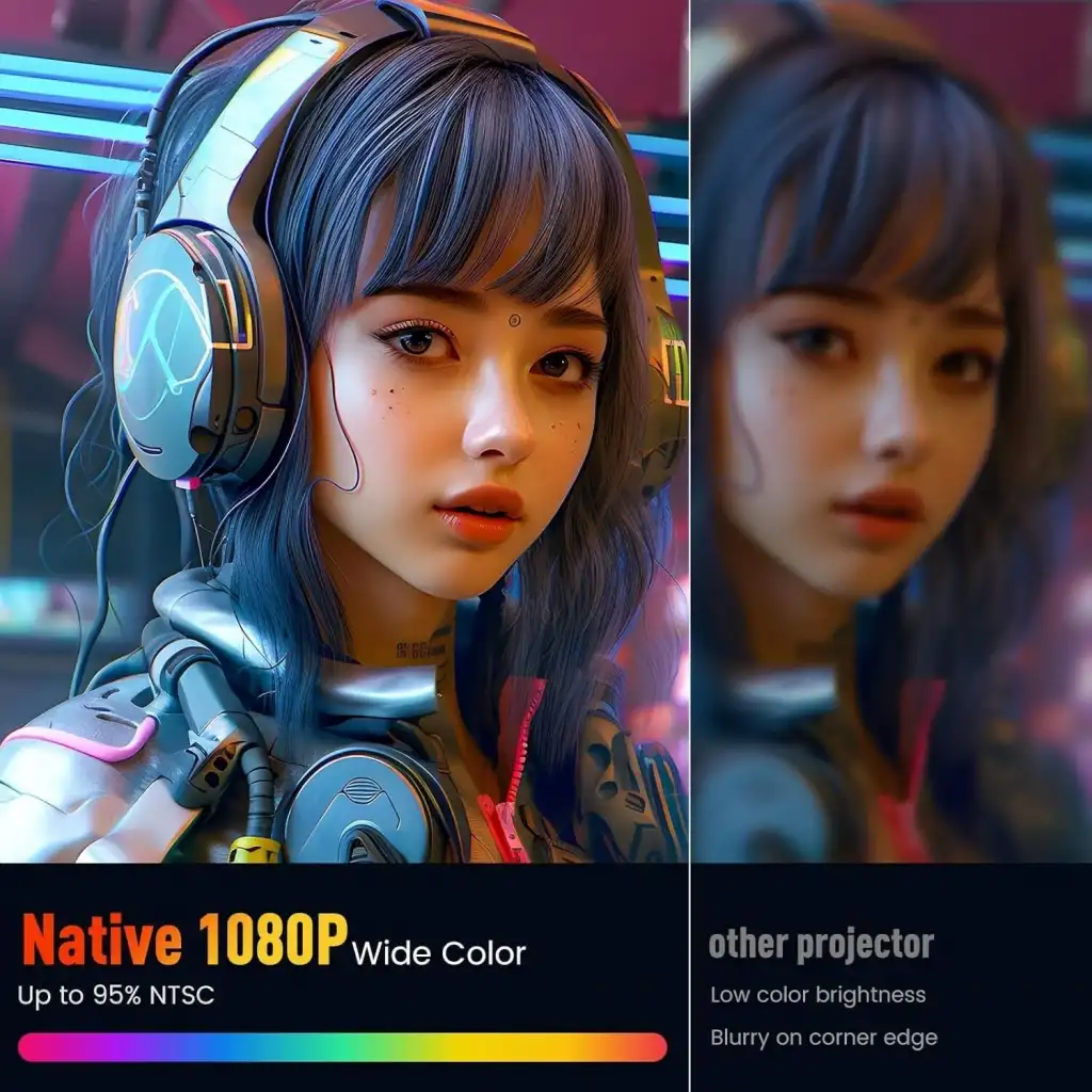 [Daha Fazla Keskinleştir - Full HD, Yerel 1080P] LED ışık ve LCD teknolojisinin sağladığı yerel 1080P çözünürlük ve yüksek kontrast (12000:1) ile net ve ayrıntılı görüntülerin keyfini çıkarın. Ayrıca, en son NTSC renk teknolojisi ve görüntü kenarı işleme algoritmik özellikleri %80 parlaklık düzgünlüğü sağlar, böylece her ayrıntı ortam ışığında bile net bir şekilde görülebilir. Dış mekan projektörü, Full HD video ile sinematik bir görüntüleme deneyimi sunar