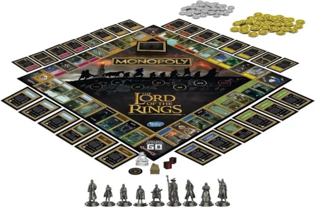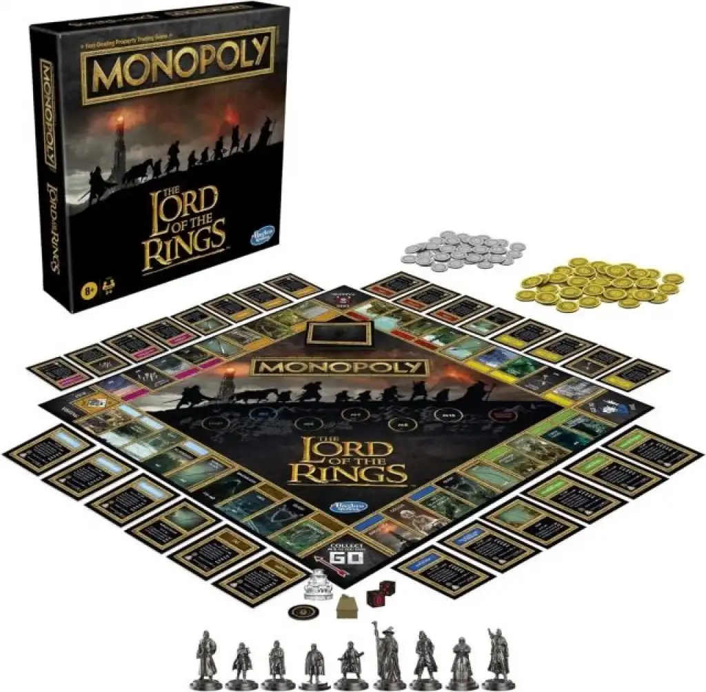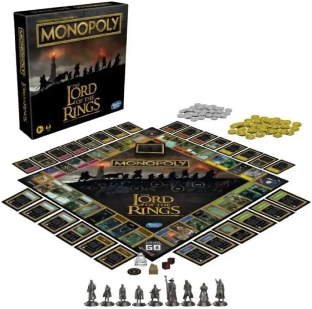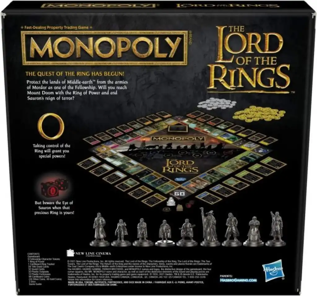 MONOPOLY OYUNU: YÜZÜKLERİN EFENDİSİ OYUNU: Yüzüklerin Efendisi film üçlemesinden ilham alan bu Monopoly masa oyunuyla Orta Dünya topraklarını Mordor ordularından koruyun