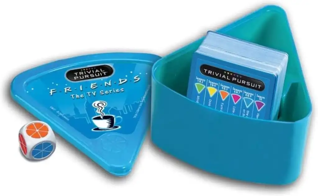 FRIENDS TV DİZİSİNDEN İLHAM ALINDI: Oyuncular, Friends televizyon dizisinin en sevilen anlarından bazılarına dayanan 600 soru içeren bu bilgi oyunu ile Friends televizyon dizisi hakkındaki bilgilerini test edebilirler. HEYECAN VERİCİ PARTİ OYUNU: Aşk önemsiz şeyleri. Arkadaşlarınızı bir araya toplayın ve 12 yaş ve üzeri için Trivial Pursuit: Friends The TV Series Edition oyununu çıkararak partiyi güçlendirin ARKADAŞLAR TV ŞOVU TRIVIA: Bu Trivial Pursuit oyunundaki sorular, Ross ve Rachel'ın Vegas'taki düğününden klasik Holiday Armadillo'ya kadar birçok favori Friends anına dayanmaktadır. KOMPAKT VE TAŞINABİLİR: The Trivial Pursuit: Friends The TV Series oyununda oyun tahtası yoktur. Hareket halindeyken yanınıza almanız kolay, kama şeklindeki kullanışlı bir kutuda paketlenmiş olarak oyuncuların ihtiyaç duyduğu her şeyi içerir EĞLENCELİ BİR HEDİYE OLUR: Trivial Pursuit oyununun bu heyecan verici sürümüyle Friends TV Dizisinin 25. Yıldönümünü kutlayın. Friends televizyon dizisinin hayranları ve aynı zamanda bilgi meraklıları için harika bir hediye