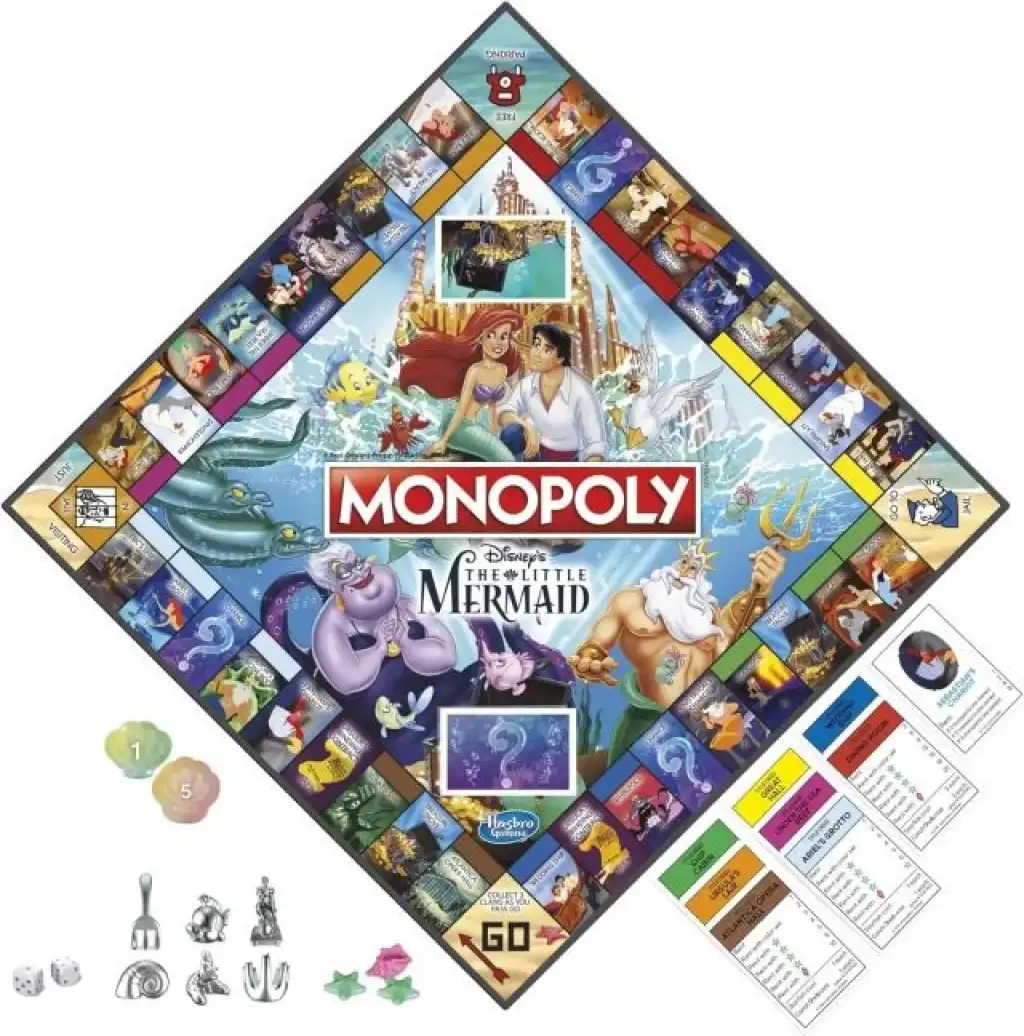 MONOPOLY: DISNEY'S THE KÜÇÜK DENİZ KIZI MASA OYUNU: Ariel'in Mağarası, Ursula'nın İni ve Mavi Lagün gibi favori yerleri satın alın ve satın