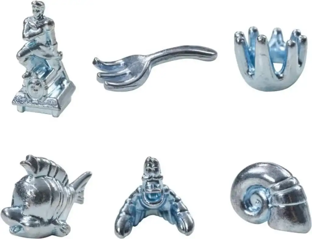 6 ÇİNKO TOKEN: Küçük Denizkızı Whosit veya Whatsit olarak oynayın. Tekel jetonları arasında Flounder, Sebastian, Eric'in Heykeli, Triton'un Tacı, Ariel'in Dinglehopper'ı ve Ursula'nın Nautilus Kabuğu bulunur
