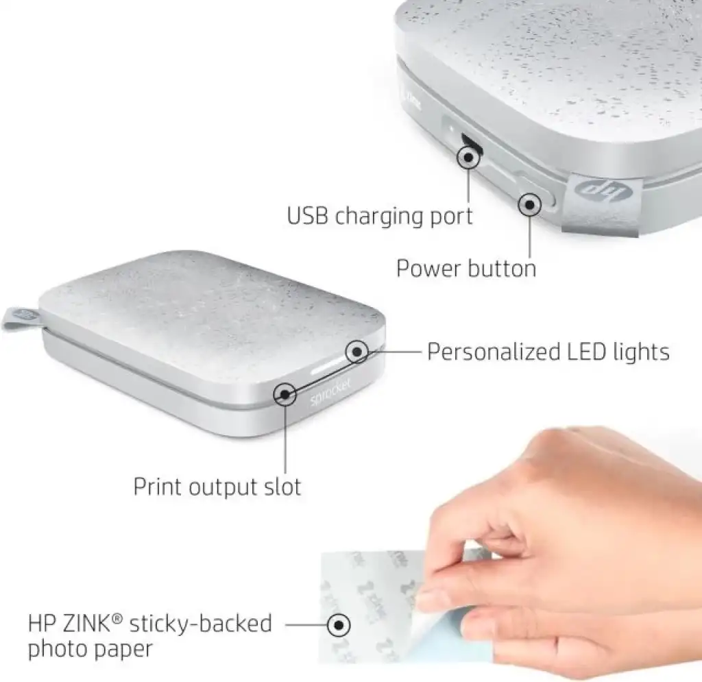 İSTEK ÜZERİNE FOTOĞRAF YAZDIRIN HP Sprocket 2. Sürüm Yazıcı, Akıllı Telefonunuzdan veya Sosyal Medyadan 2”x 3” Fotoğrafları Basar. iOS 10-Plus ve Android 5-Plus, Bluetooth 5.3 için