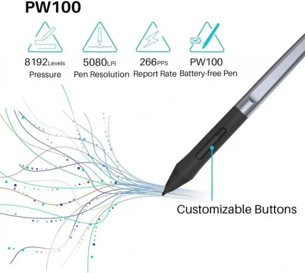 • Gelişmiş Kalem Performansı - Dijital kalem PW100, 8192 seviyeli basınç hassasiyeti, 5080LPI kalem çözünürlüğü ve neredeyse hiç gecikme olmaksızın size en üst düzeyde hassasiyet ve kontrol sağlar. Ayrıca pilsizdir, artık şarj edilmesine gerek yoktur. Kalemin yan düğmeleri, kalem ve silgi arasında anında geçiş yapmanıza yardımcı olur.