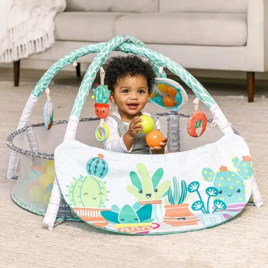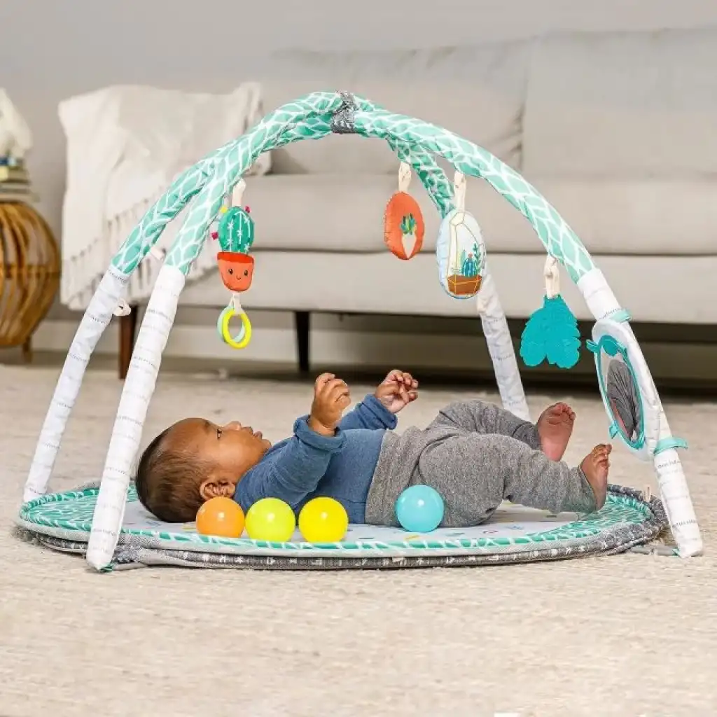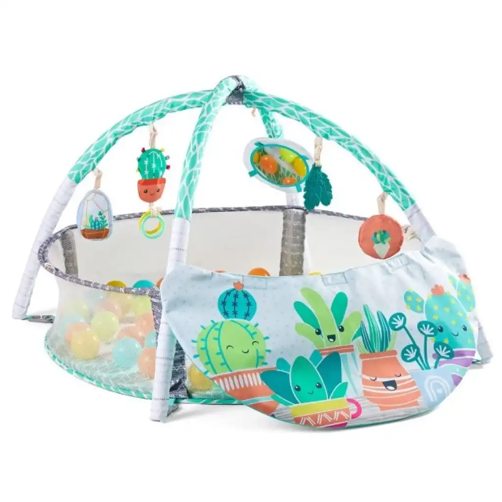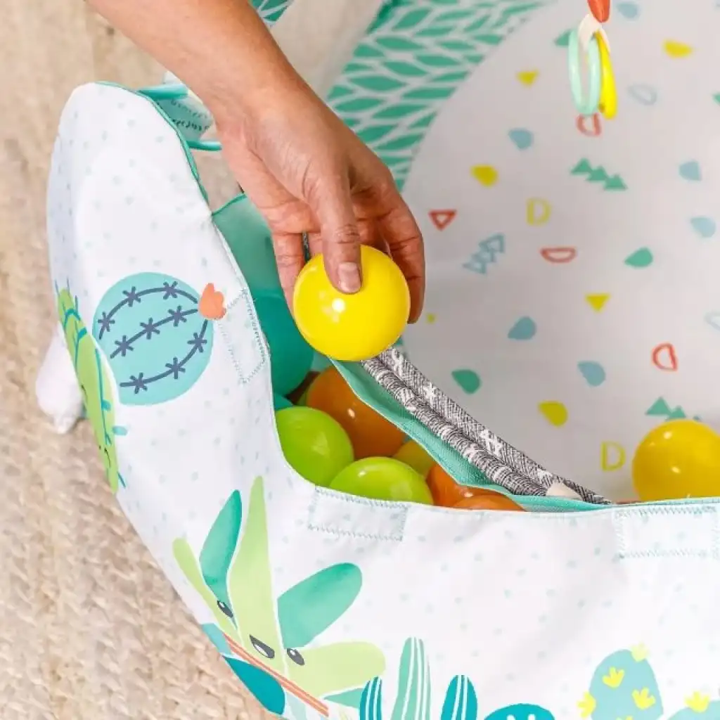 Çok yönlülük: Oyuncakları kolayca farklı alanlara taşıyarak bebeğin daha eğlenceli ve yeni keşifler yaşamasını sağlar; büyük ayna ve destek yastığının hepsinde oyuncakları açıp kapatmak için bağlantılar bulunur Nihai eğlence: Motor becerilerinin geliştirilmesi ve duyusal oyunlar için farklı şekil, renk ve dokularda oyuncaklar, bağlanabilir bir diş kaşıyıcı ve daha da fazla oyun seçeneği için 40 top içerir Kolay saklama alanı: Bebek aktivite salonundan yürümeye başlayan çocuk top havuzuna kolayca geçiş yapar ve topları toplanarak temiz ve düzenli kalmanıza yardımcı olur Yanınızda taşıyabileceğiniz özellikler: Bu spor salonunda bir ayna ve yeniden konumlandırılabilen veya bebek arabasına bağlanabilen bir diş kaşıyıcı dahil 5 oyuncak bulunur; Oyuncaklar, bilişsel gelişim için farklı renkler, şekillerden oluşur.