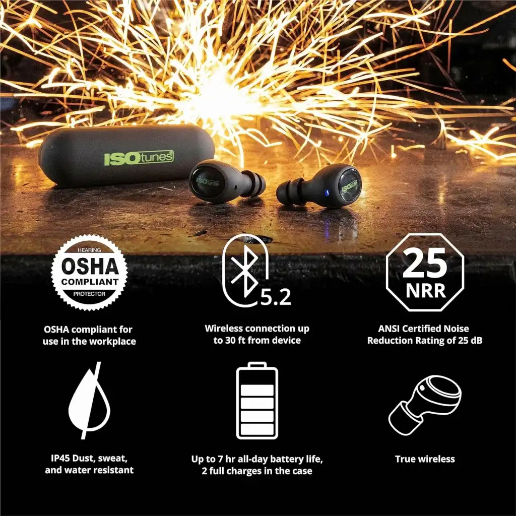 ISOtunes Free 2.0 True Wireless Earbuds: Improved 25 dB Noise Reduction Rating, 22 Hour Total Battery Life, Noise Cancelling Mic, OSHA Compliant Bluetooth Hearing Protector (Free 2.0 - Matte Black)