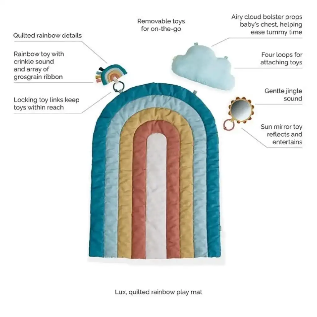 Itzy Ritzy'nin yazlık karın üstü zaman minderi ve oyuncakları, bebek için karın üstü zamanı eğlenceli ve ilgi çekici hale getiriyor