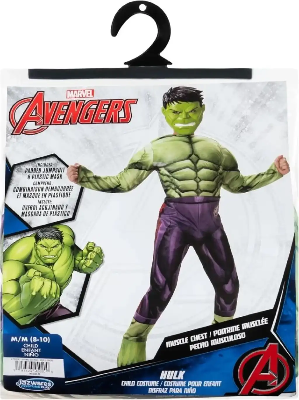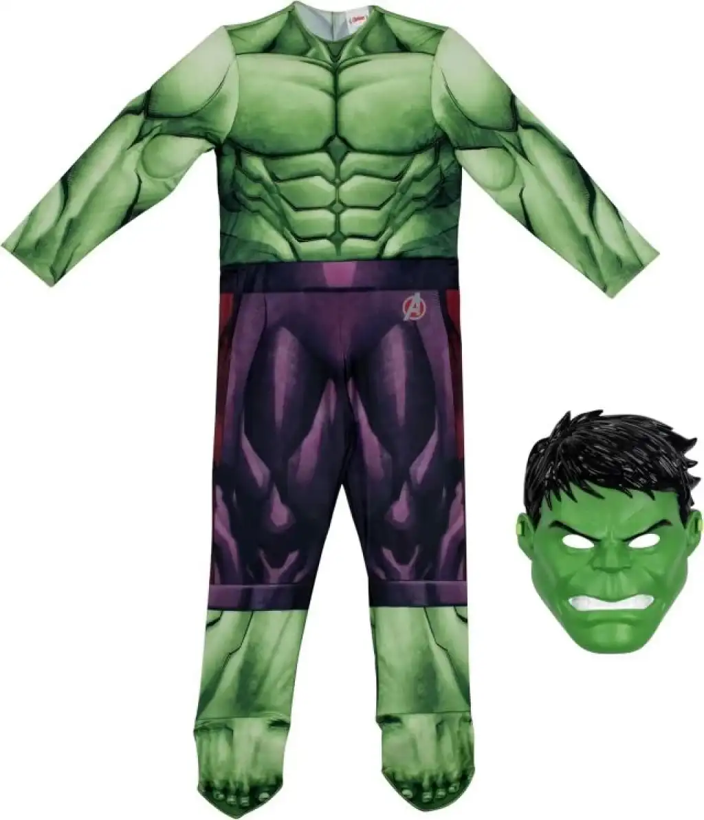 BASKILI TASARIM: Kostümün gövdesinde Hulk'un şişkin göğsünün baskılı bir tasarımı bulunur.
