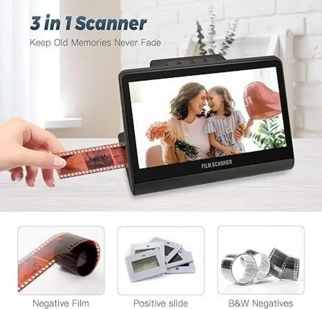48 MP Film & Slide Scanner with 7 Inch LCD Screen, All-in-One Digital Film Scanner Built-in 16GB Memory Converts B&W/135/110/126 KPK Negative and Super 8/Monochrome Slides into JPEG Photos
