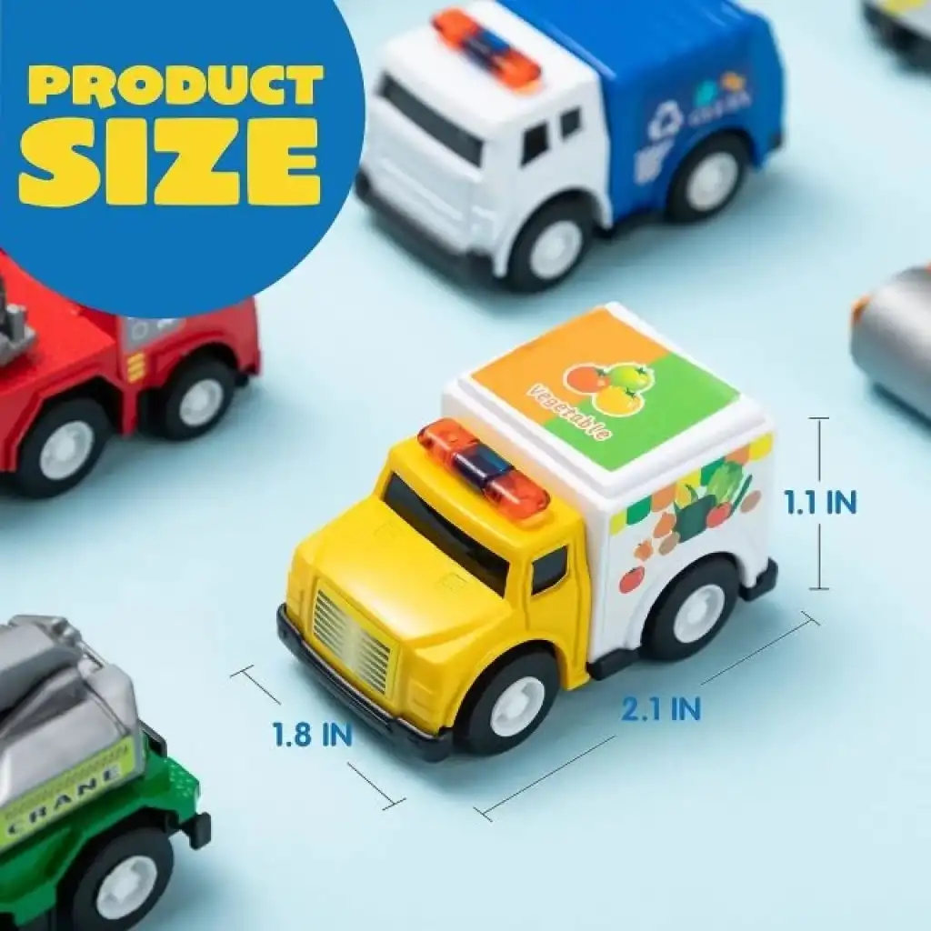 GERÇEK İŞLEV. Küçük çocuklar ve çocuklar için bas-çık geri çek çeşitli araçlar oyuncak setimiz, zorlu kullanıma ve duvardaki darbelere dayanabilir! Çocuğunuza zarar verebilecek keskin kenarlar veya köşeler yoktur. Parlak ve renkli. Sürtünmeli, pil gerektirmez. Sadece geri çekin ve doğal olarak ilerlemesine izin verin, pürüzsüz tekerlekler arabanın uzun süre çalışmasını sağlayabilir.