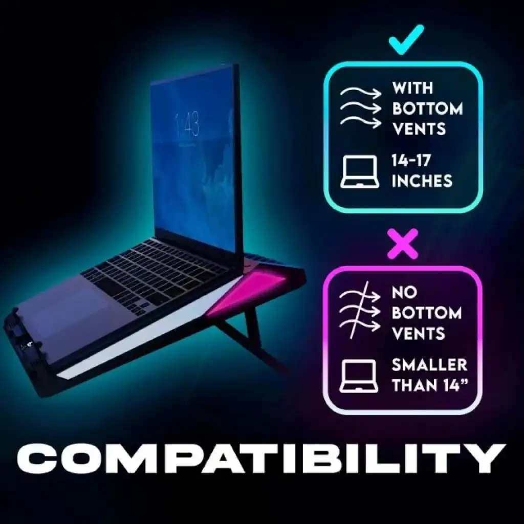 UYUMLULUK HAKKINDA ÖNEMLİ BİLGİ: Bu soğutucu yalnızca 38 - 43 inç arasındaki dizüstü bilgisayarlarla uyumludur. Daha küçük modeller desteklenmez. Ayrıca dizüstü bilgisayarınızın altında havanın dışarı çıkabilmesi için havalandırma delikleri olduğundan emin olun. Dizüstü bilgisayarınızın altında herhangi bir ızgara yoksa (örneğin Apple MacBook modelleri) bu modeli KULLANMAYIN. Uyumlulukla ilgili sorularınız için Amazon'daki "Satıcıyla İletişime Geçin" seçeneğini kullanarak bize ulaşın.