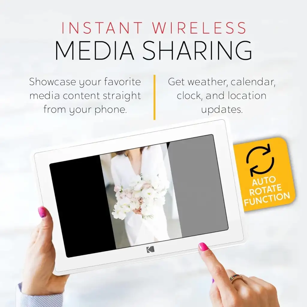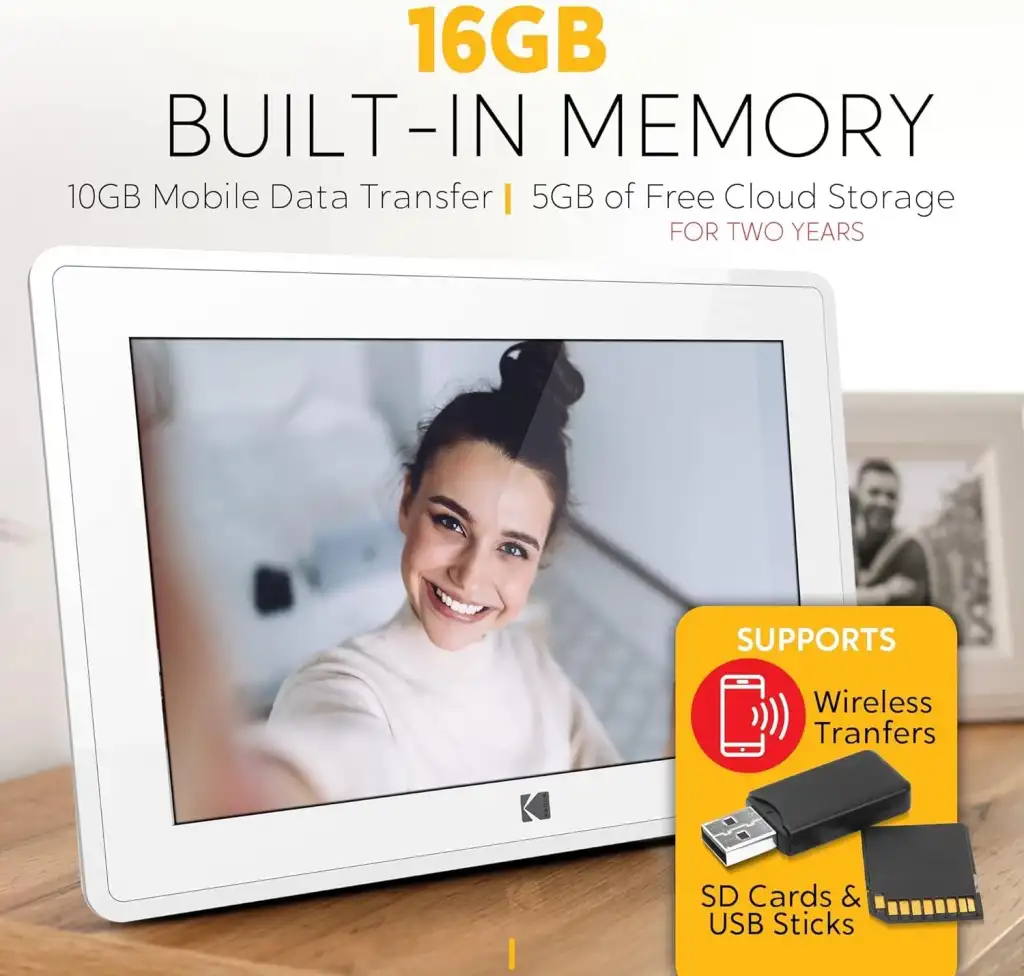 Kodak 10-Inch Touch Screen Digital Picture Frame, Wi-Fi Enabled with 16GB of Internal Memory, HD Photo Display and Music/Video Support Plus Clock, Calendar, Weather and Location Updates - Whilte