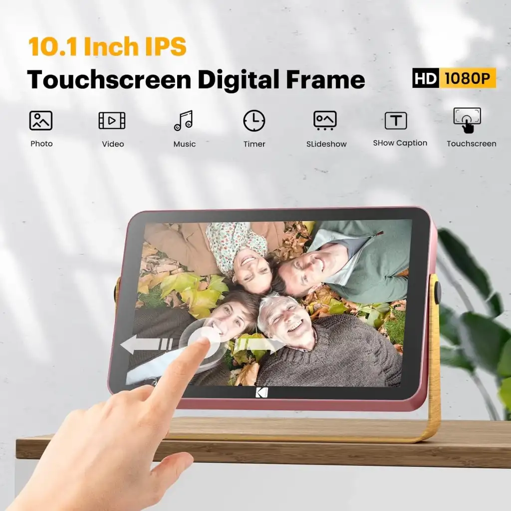 KODAK WiFi Digital Picture Frame 10.1 inch with 16GB Built-in Memory,4000mAh Battery,1280 * 800 Touch Screen 2.4GHz WiFi, Auto-Rotate, KODAK APP, Gift for Friends Family(Pink)