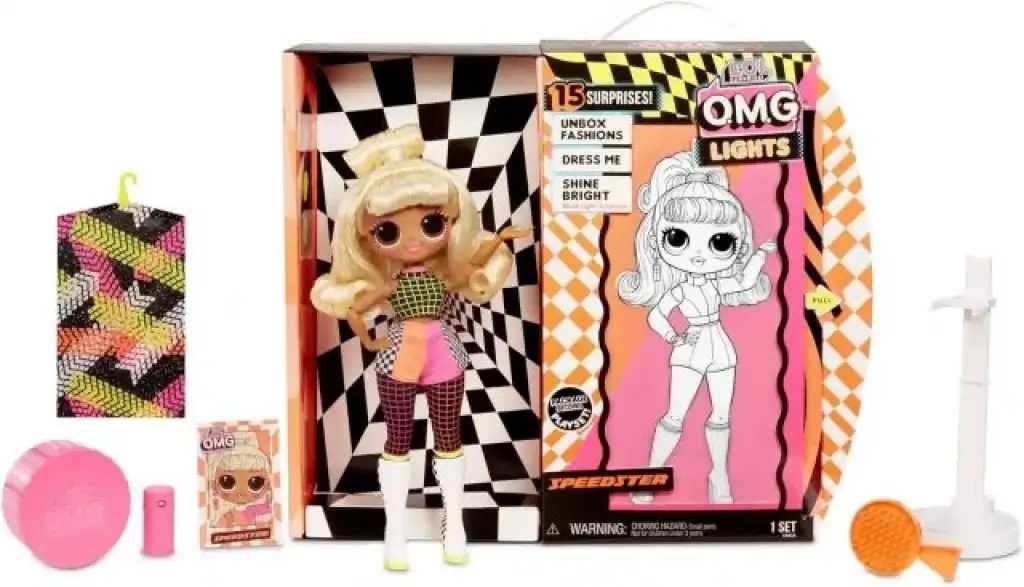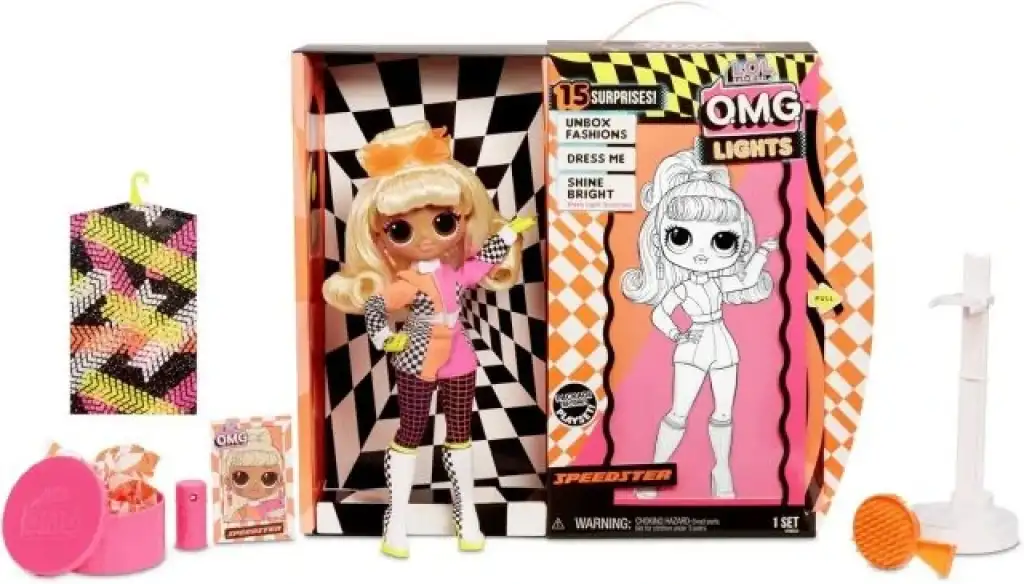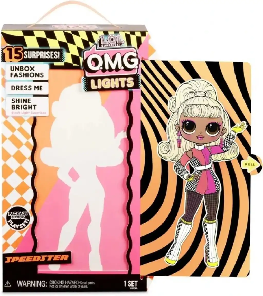 L.O.L. Sürprizi O.M.G. Lights'ın moda bebeği Speedster ile 15 sürprizin kutusunu açın; çarpıcı özellikleri, şekillendirilmiş saçları ve tonlarca poz için eklemli yapısıyla