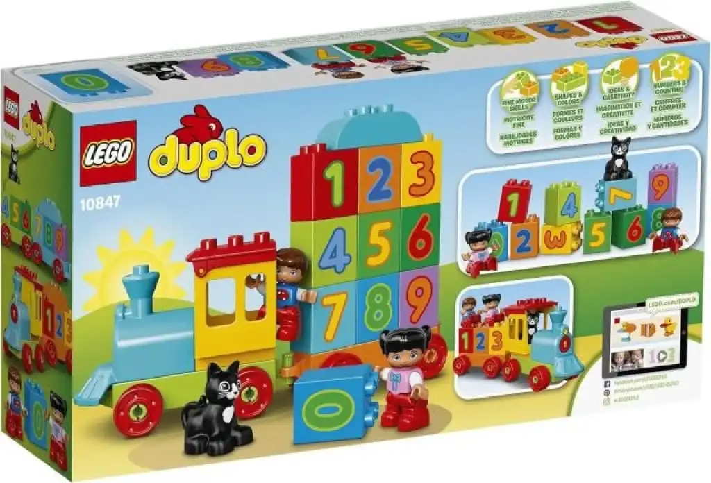 Çocuğun hayatındaki önemli bir kilometre taşı olan sayıları öğrenmek, LEGO DUPLO'nun popüler sayı tren setiyle keyifli bir şekilde öğrenmesine olanak sağlar. Bu sayı tren seti, 0 ile 9 arasındaki sayılarla süslenmiş bir yapım makinesi ve üç vagon, iki çocuk LEGO DUPLO figürü ve bir kedi figürünü içerir. Çocuklar, renkli sayı treni inşa setini inşa edip yeniden inşa ederken, DUPLO insan ve hayvan figürleriyle rol oynayabilir. Bu eğitici oyuncak, çocukları etkileyecek şekilde sayıları öğrenmeyi ve sayıları öğrenmeyi kolaylaştırır. LEGO DUPLO oyuncakları, çocukların inşa becerilerini ve hayal gücünü teşvik eder. Lokomotif, kabini eklenmiş olarak yaklaşık 3 inç (10 cm) yüksekliğinde, 14 inç (37 cm) uzunluğunda ve 2 inç (6 cm) genişliğindedir. Bu sayı tren seti 23 parça içerir ve 2,3,4 ve 5 yaş arası erkek ve kız çocuklar için harika bir eğitici oyuncaktır.