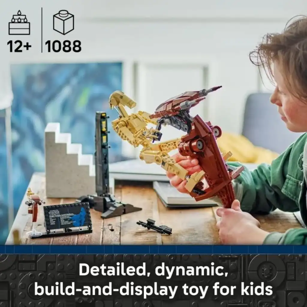 BOYUTLAR – Bu 1.088 parçalık setteki STAP'teki Savaş Droidi, stand üzerinde sergilendiğinde 38 cm'den (15 inç) fazla yüksekliğe, 30 cm uzunluğa ve 14 cm genişliğe sahiptir.