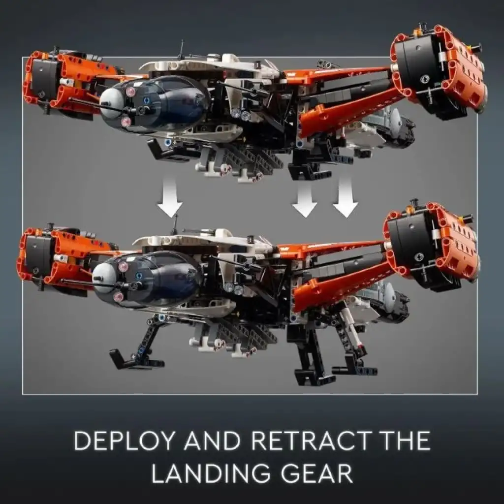 Dikey kalkış ve iniş takımı – Çocuklar, yaratıcı oyunlarla farklı gezegenlerde yaşamanın ve çalışmanın olanaklarını ve zorluklarını keşfederken iniş takımlarını açıp geri çekebilirler.