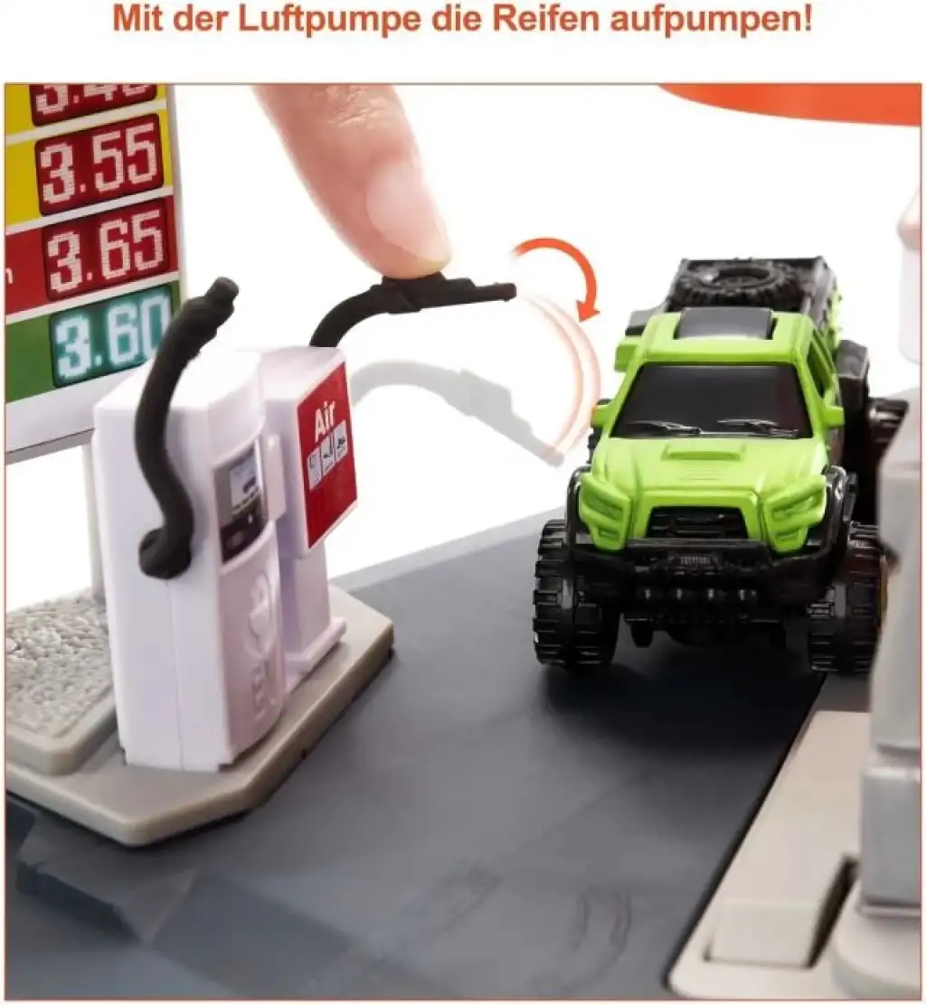 Bu oyun seti pek çok harika itilerek oynanma özelliğine sahiptir; çocuklar yukarı aşağı hareket edecek pompayı etkinleştirmek için arabalarını gaz tanklarının önüne iterler. Ayrıca gaz fiyatı ekranını ayarlayabilir ve hava pompasını manuel olarak etkinleştirebilirler.