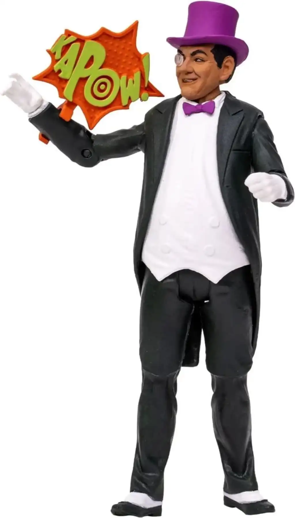 1960'ların Batman serisinin ikonik eski tarz görünümünü taşıyan kart destekli bir kabarcıklı ambalajda paketlenmiştir