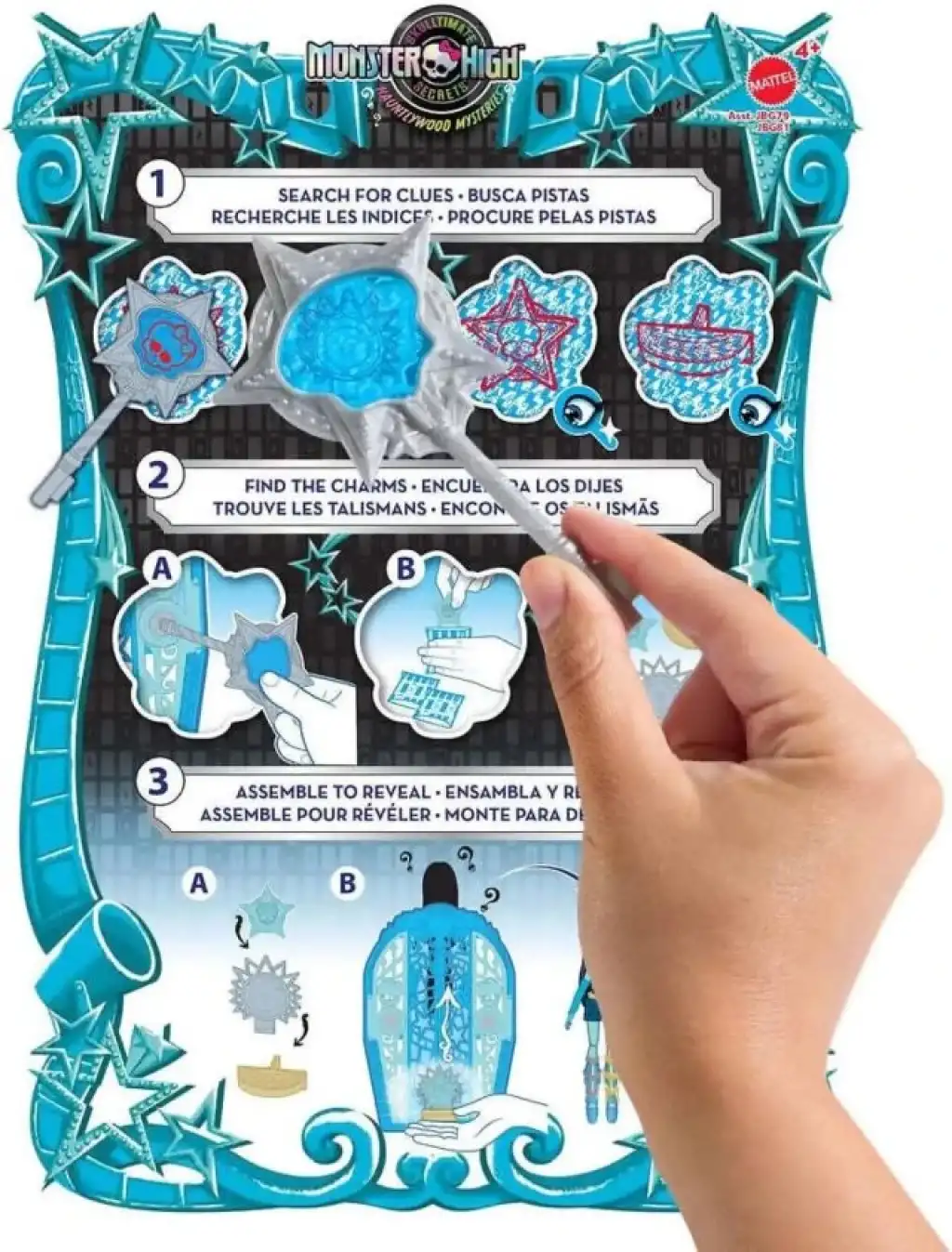 Tılsımı dolabın tabanına yerleştirin, ardından fermuar gibi yukarı kaydırarak Frankie Stein bebeğini tüm ihtişamıyla ortaya çıkarın! Kesintisiz eğlence için ortaya çıkarma işlemini tekrarlayın. Frankie Stein bulunduğuna göre, artık hazırlanma zamanı! 125'ten fazla kombin seçeneğiyle, Hauntlywood sahnesinde giyebileceğiniz göz kamaştırıcı derecede gösterişli kostümler var!